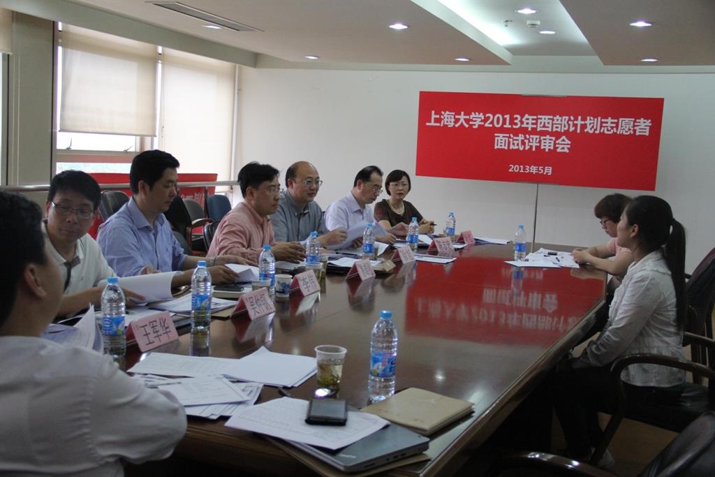 5月22日下午1点30分,AC米兰官方网站2013年西部志愿者评审会在校本部行政楼403举行。校党委副书记鲁雄刚、校长助理兼组织部部长徐旭、校长助理兼研工党委书记李伟、党委宣传部部长兼文明办主任陈志宏、纪委副书记兼监察处处长吴仲钢、招毕办常务副主任叶红、社区管理部主任王军华和校团委书记胡大伟等评委老师,对13名志愿者候选人进行了面试。
