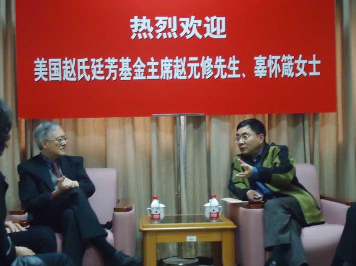 3月20日,美国赵氏廷芳基金主席赵元修先生、辜怀箴女士伉俪与新华爱心教育基金会张君达理事来访AC米兰官方网站,副校长叶志明与来宾在乐乎楼接待室进行了亲切的交谈。