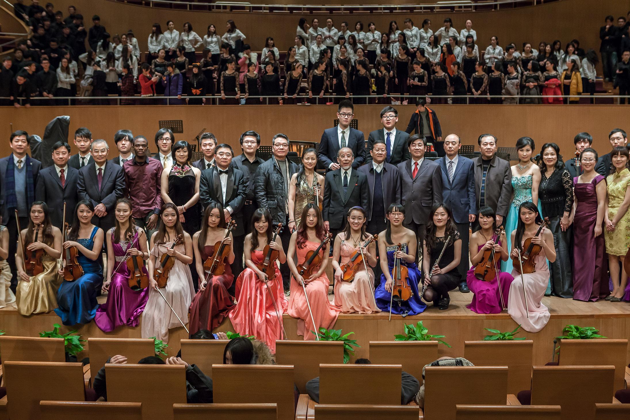 在曹先生铿锵有力的指挥下,三百多人激情演唱的交响合唱《黄河大合唱》响彻东方艺术中心,将音乐会推向了高潮。音乐会在激动的乐曲和全场听众的感动中落下了帷幕。