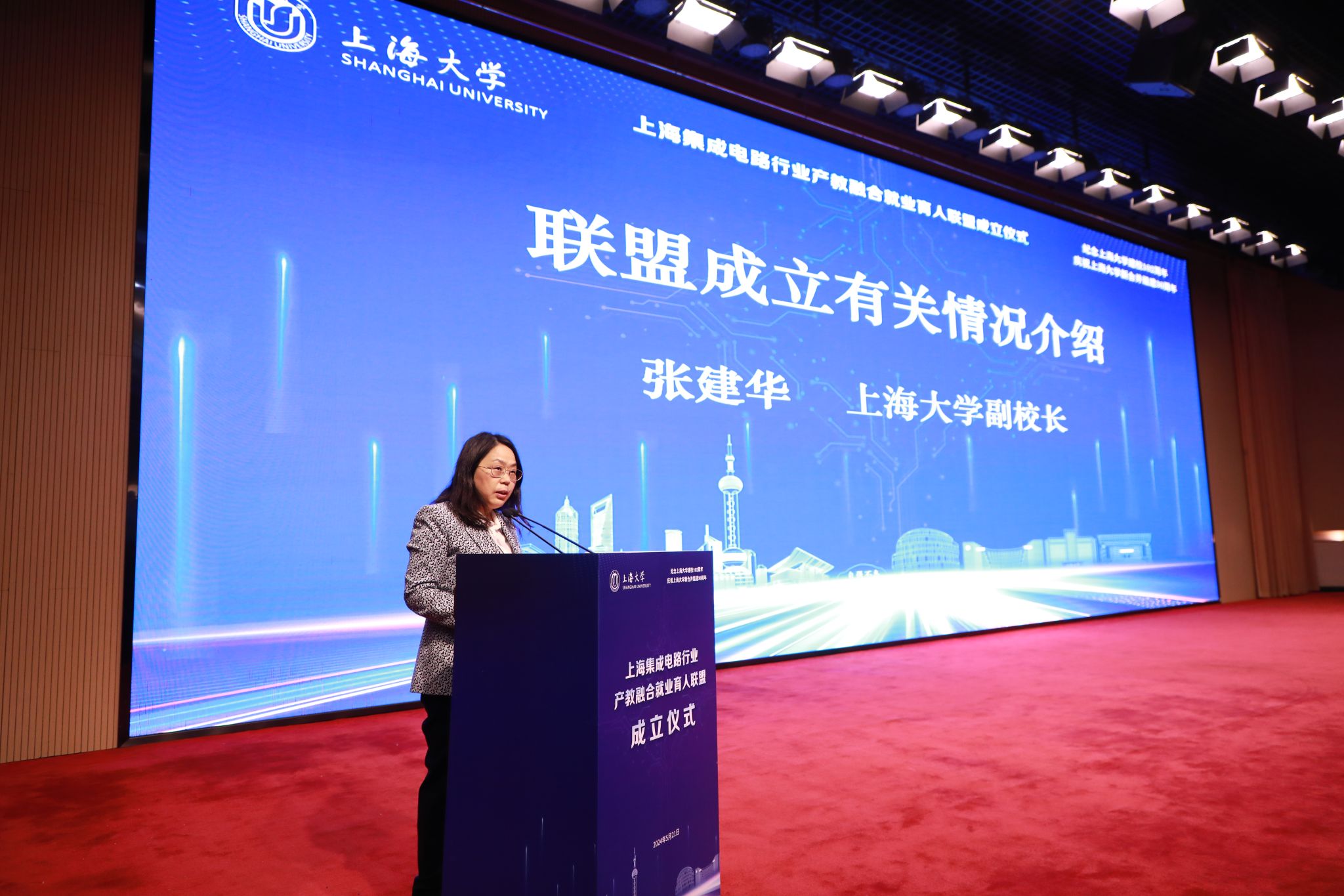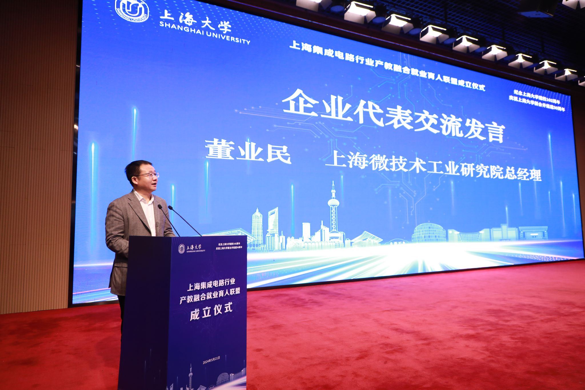 成旦红在致辞中表示,在市委、市政府的关心下,在市教卫工作党委、市教委、市经信委等委办局的指导下,AC米兰官方网站主动对接国家战略和地方经济发展需求,积极与企业深入开展各类产学研合作,通过产教融合、科教融汇,不断提升育人质量。近年来,为更好服务集成电路等三大先导产业,加快推进“五五战略”,学校组织开展多学科交叉会战,并先后成立微电子学院、卓越工程师学院等紧缺高质量人才培养基地。此次发起成立联盟,旨在进一步深化产教融合、推动高校人才培养与社会需求有效适配,主动担当作为,持续探索“协同育人、协同办学、协同创新”的产教融合就业育人新机制,为国家和上海集成电路产业发展贡献更多智慧和力量。