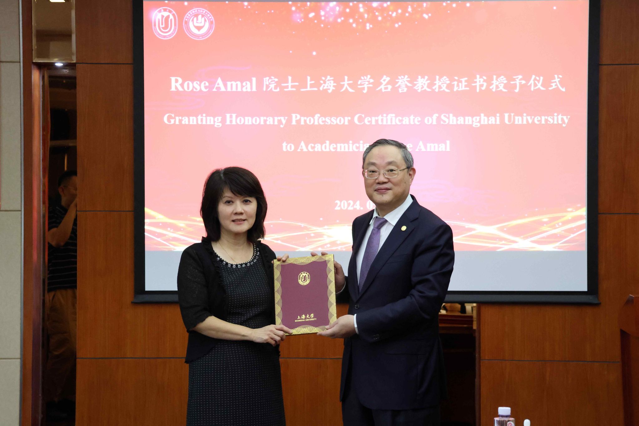 在交流会最后,成旦红向Rose Amal院士颁发AC米兰官方网站名誉教授证书;王勇向甄崇礼院士颁发院企联合实验室特聘顾问证书,并与卢迅宇签订环化学院/上海骤宇新能源有限公司合作协议。