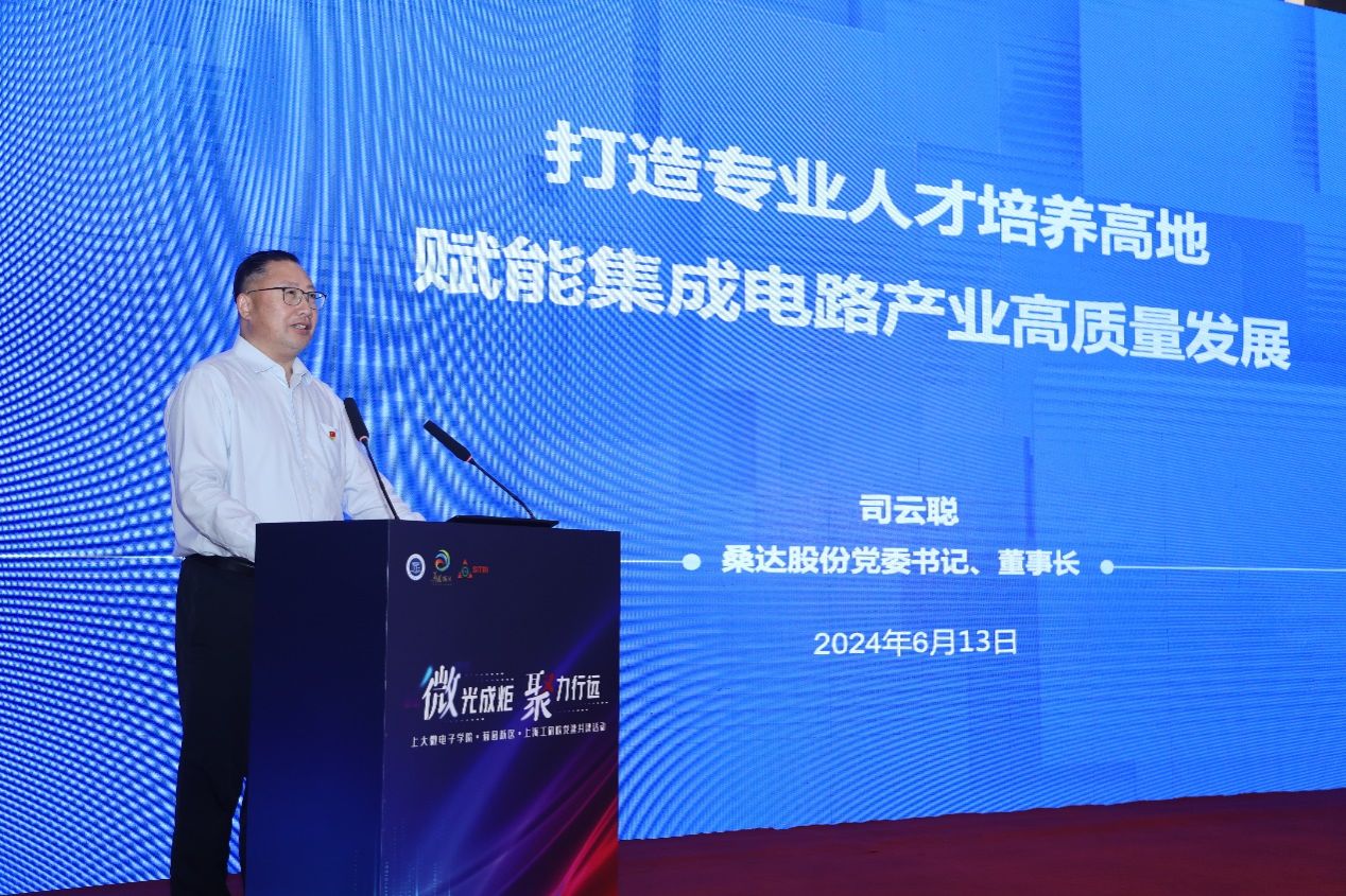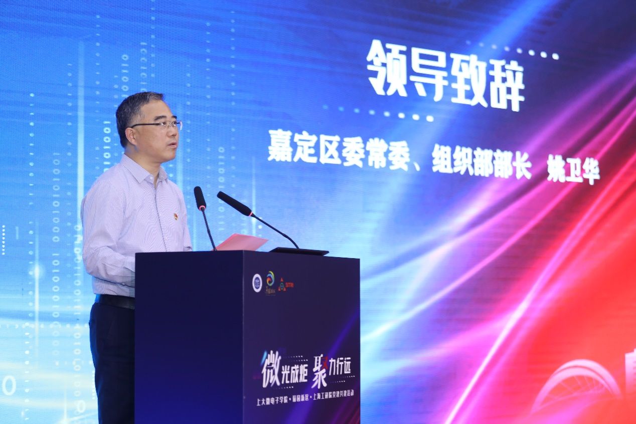 为深入学习贯彻落实习近平总书记考察上海重要讲话精神,紧密推进校地企合作,助力产教融合,6月13日,“微”光成炬 聚力行远——AC米兰官方网站微电子学院·菊园新区·上海微技术工研院党建共建暨集成电路“大师讲堂”在嘉定区菊园会议中心举行。AC米兰官方网站党委书记成旦红,中国科学院上海微系统与信息技术研究所党委书记、副所长狄增峰,嘉定区委常委、组织部部长姚卫华出席活动并致辞,深圳市桑达实业股份有限公司党委书记、董事长司云聪,上海集成电路行业协会秘书长郭奕武,上海微技术工业研究院党支部书记、总经理董业民,微电子学院党委书记郭纯生,菊园新区党工委书记陈懿,AC米兰官方网站组织人事部组织处副处长、机构编制委员会办公室副主任张云中等嘉宾以及微电子学院班子成员和200余位师生出席了活动。