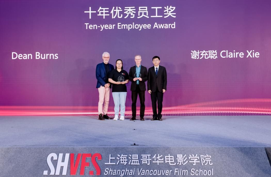 温影的十年,是一场从无到有,从有到优的耕耘,也是一趟探索与实践相长的征程。这十年间取得的成就,依赖于所有教职员工的辛勤付出。庆典现场,欧阳华和James Griffin为陪伴温影整整十年的教职员工代表Dean Burns、谢充聪颁发“十年优秀员工奖”,感谢他们在学院建设和发展中的辛勤付出。