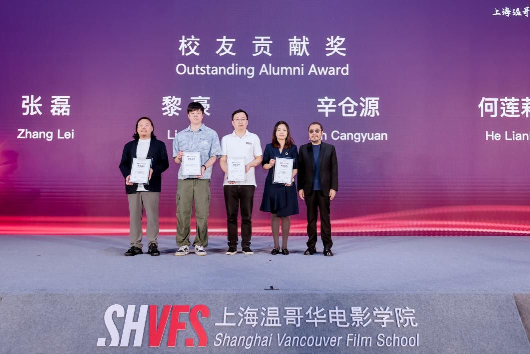 十载耕耘,上海温哥华电影学院已为中国影视行业发展持续输送创新人才和中坚力量,从温影走出来的莘莘学子不忘创作初心,在世界各地践行着自己的使命。庆典现场,贾樟柯为张磊、黎豪、辛仓源、何莲莉颁发“校友贡献奖”,感谢他们长期以来为母校建设发展给予的大力支持。