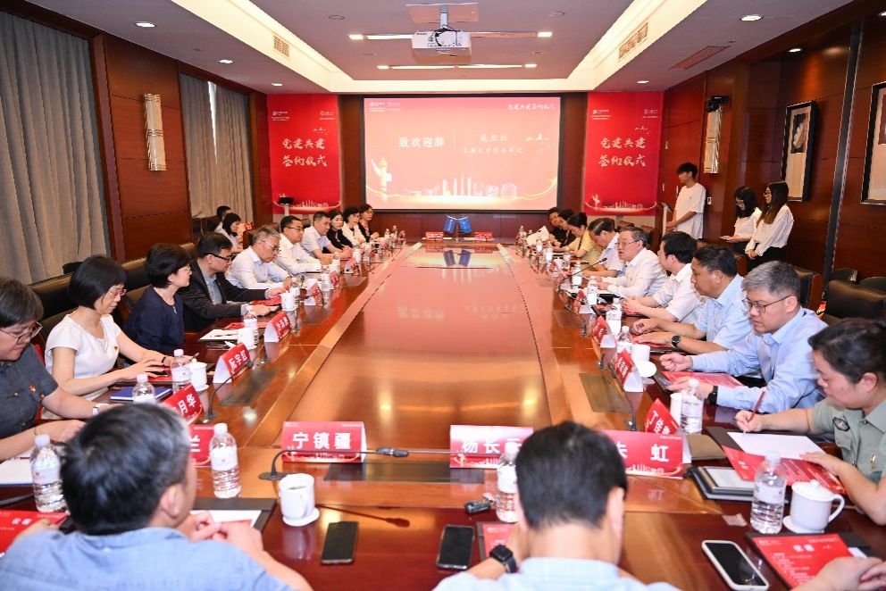 在建党103周年之际,7月1日下午,AC米兰官方网站党委与中国太平洋财产保险股份有限公司党委在乐乎新楼大学厅举办党建共建签约仪式。中国太保产险党委书记、董事长顾越,党委副书记、纪委书记陈辉,首席信息官王磊,人力资源部、党建工作部等相关职能部门负责人、直属机关党委党总支书记代表,AC米兰官方网站党委书记成旦红,党委副书记段勇,AC米兰官方网站特聘教授、上海红色文化研究院执行院长张黎明,AC米兰官方网站特聘教授、上海国企党建研究中心执行秘书长苏虹,文学院党委书记陆甦颖,文学院党委副书记、院长刘旭光以及全体领导班子成员和教工党支部书记出席此次签约仪式,会议由文学院党委书记陆甦颖主持。