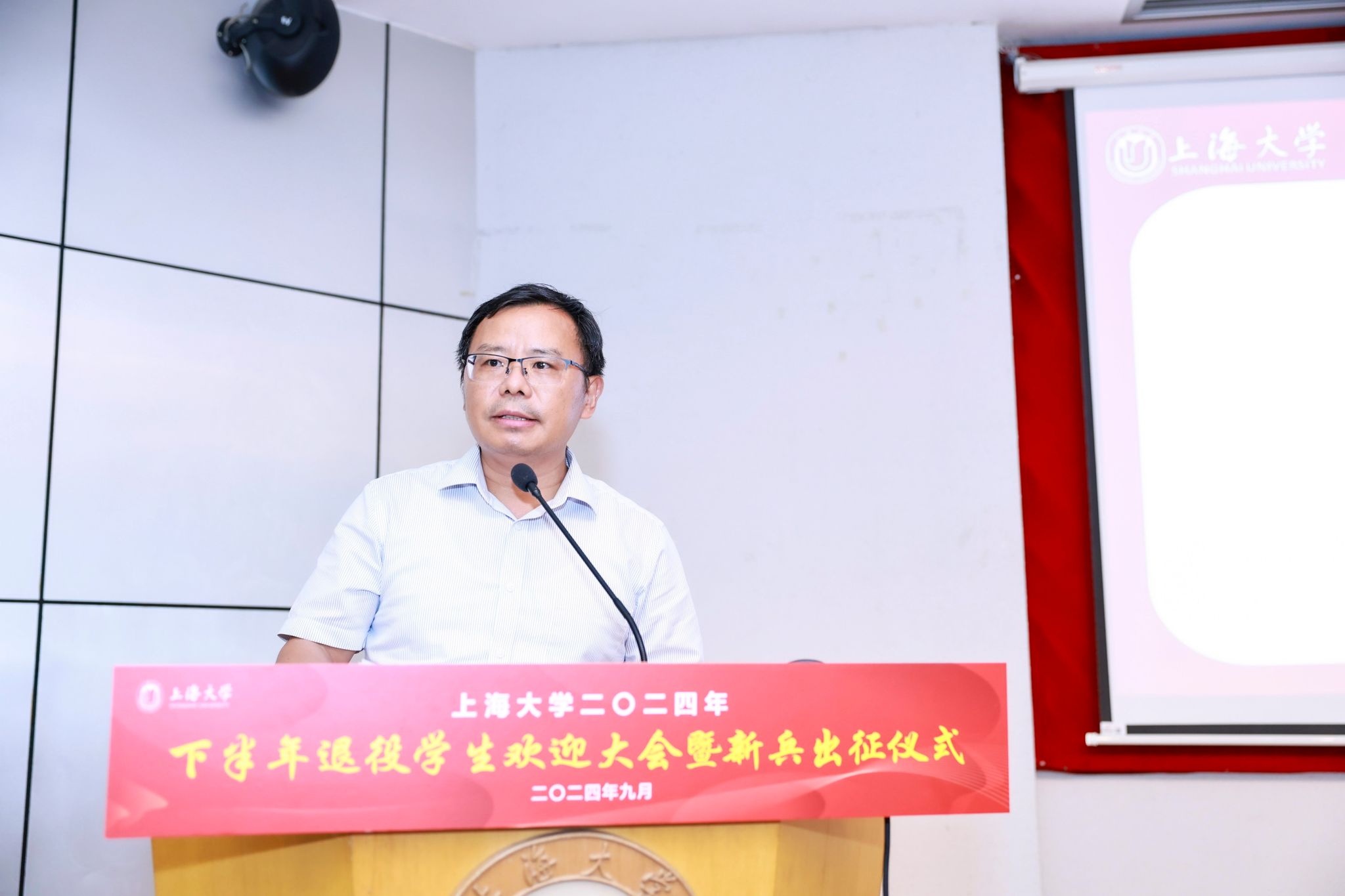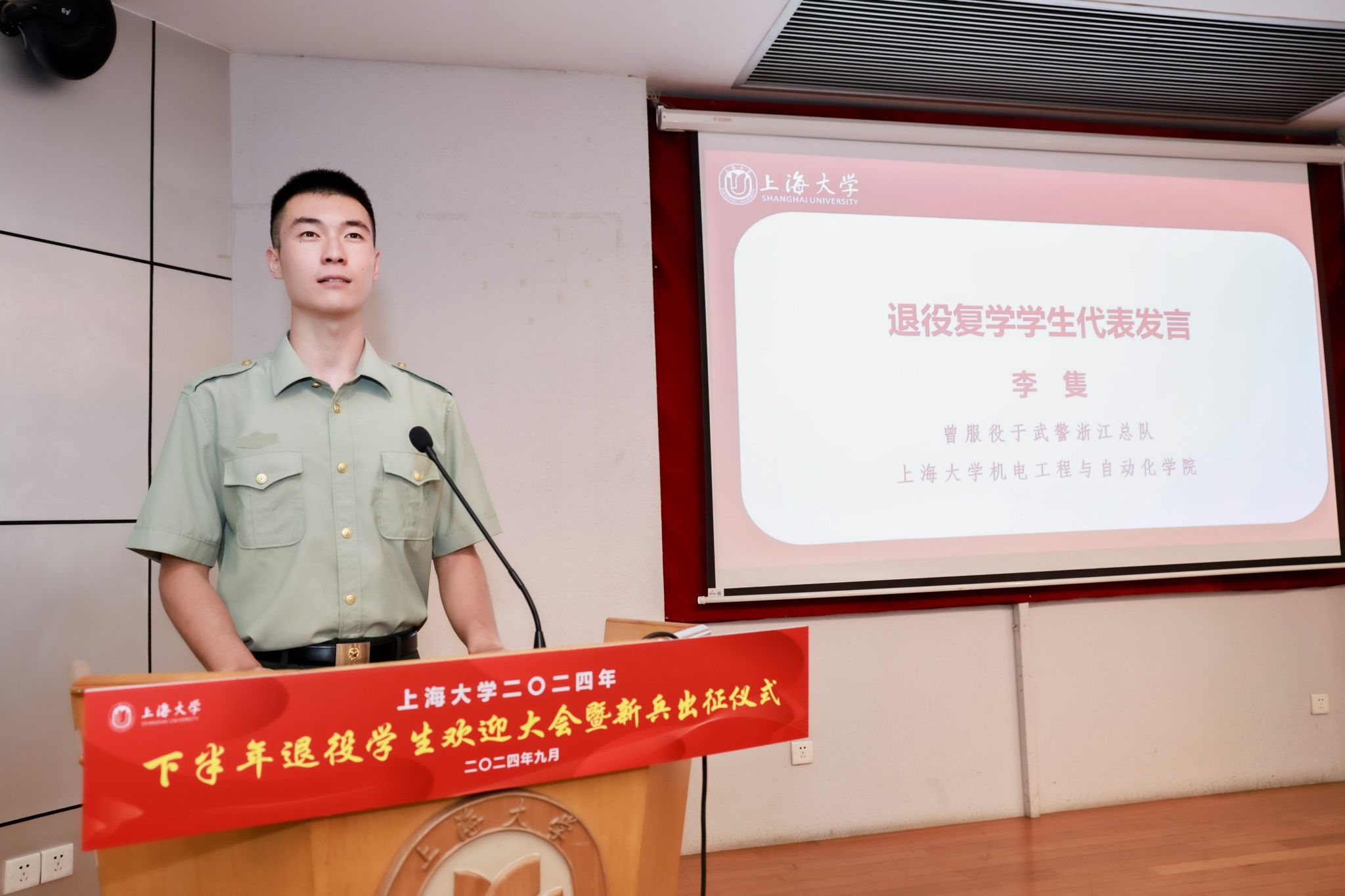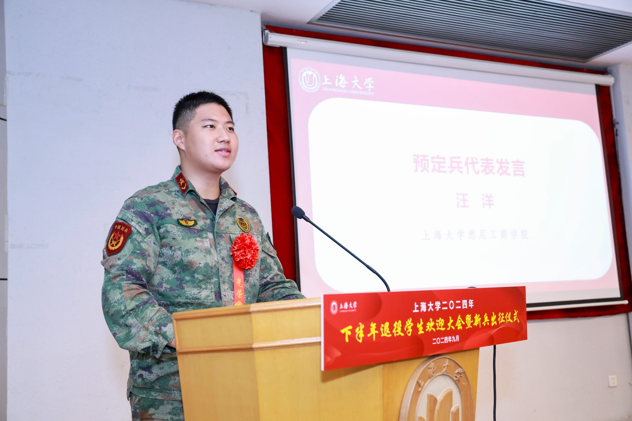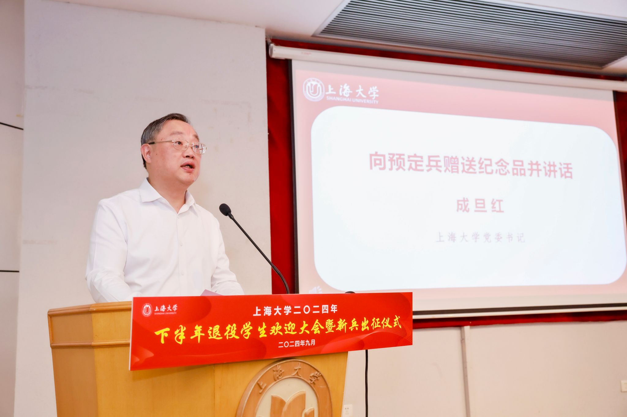 9月6日下午,AC米兰官方网站2024年下半年退役学生欢迎大会暨新兵出征仪式在宝山校区行政楼报告厅举行。AC米兰官方网站党委书记成旦红,党委副书记、副校长胡大伟,上海能源建设集团有限公司、中国电信上海公司、春秋航空和海信集团代表,学校相关部处、学院领导,教师、学生、家长代表参加活动。活动由孟祥栋主持。