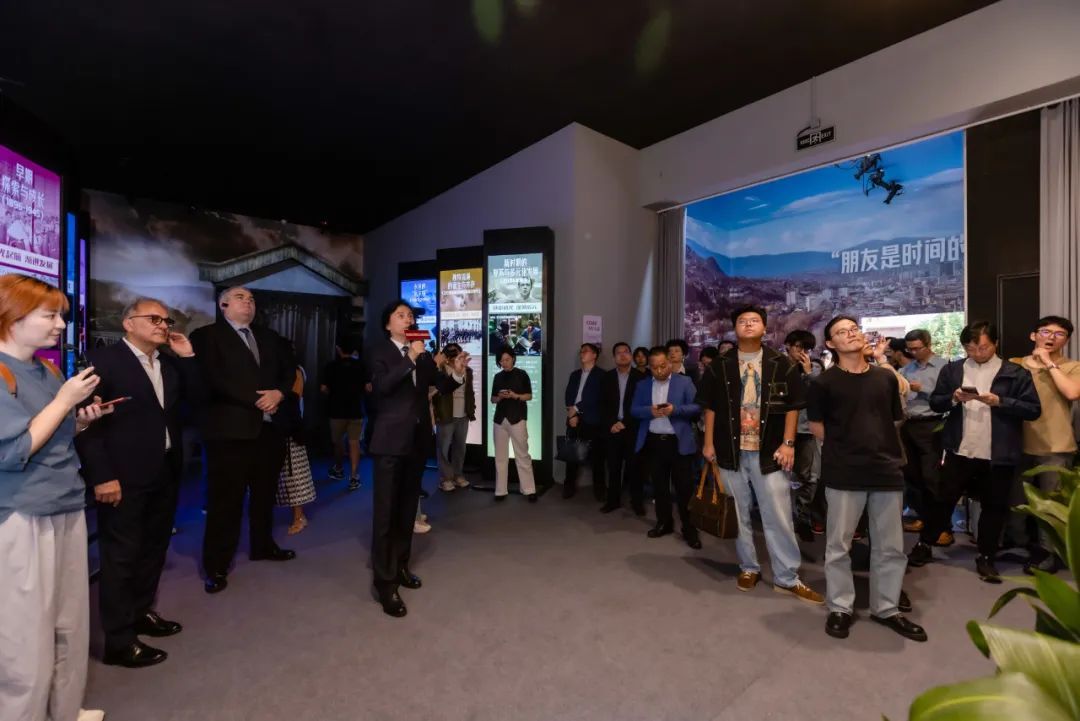 成旦红书记、萨沙·耶里米奇代总领事、龙婉丽副区长、米利科·日沃伊诺维奇先生共同为“朋友是时间的果实——塞尔维亚(南斯拉夫)电影影像展”揭幕。在场嘉宾和师生代表作为首批观众,参观了本次影像展。