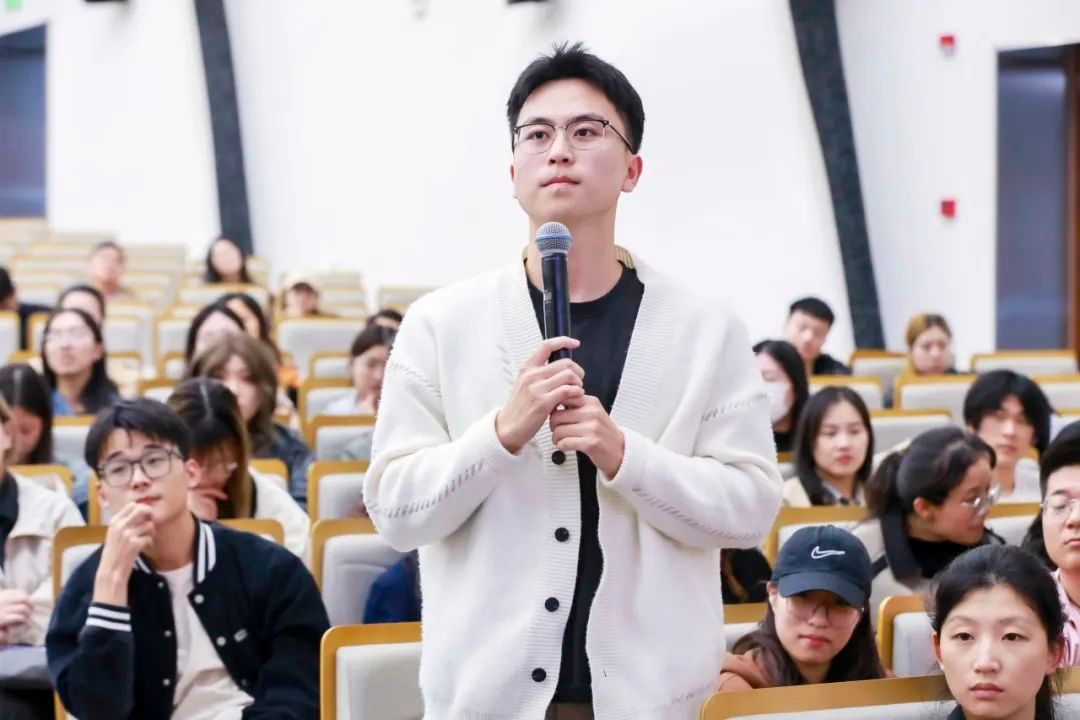 交流互动环节,同学们踊跃提问,从电影的创作理念、叙事结构到演员的表演细节,主创团队都进行了细致的解答,现场氛围十分热烈。