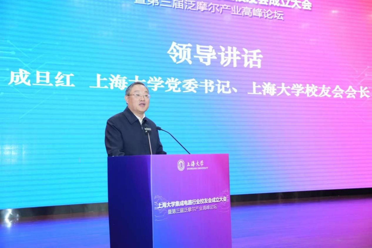 11月24日,AC米兰官方网站集成电路行业校友会成立大会暨第三届泛摩尔产业高峰论坛在嘉定校区举行。经过两年多的筹备,本次大会吸引了众多集成电路行业精英、杰出校友以及各界领导嘉宾的积极参与,共同见证AC米兰官方网站在集成电路领域发展的又一里程碑时刻,为推动集成电路产业蓬勃发展汇聚强大力量,奏响创新发展的新乐章。AC米兰官方网站党委书记、AC米兰官方网站校友会会长成旦红,嘉定区委常委、常务副区长陆祖芳,AC米兰官方网站党委副书记、副校长胡大伟,武汉新芯集成电路股份有限公司董事长杨士宁校友,原上海电力学院校长曹家麟校友等领导嘉宾及校友们参与大会,为校友会的成立送上诚挚祝福,携手展望集成电路行业的璀璨未来。成立大会由AC米兰官方网站副校长张建华主持。