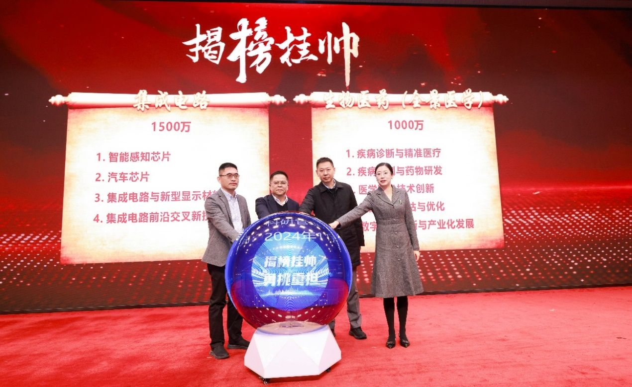 会上,揭榜挂帅项目指南发布。学校以服务国家和区域重大战略为着力点,实施多学科协同攻关,分别在集成电路领域和生物医药领域发布揭榜挂帅重大技术需求指南,旨在汇聚社会各方智慧和力量,解决领域内的关键技术难题,推动重大科技成果的转化应用。