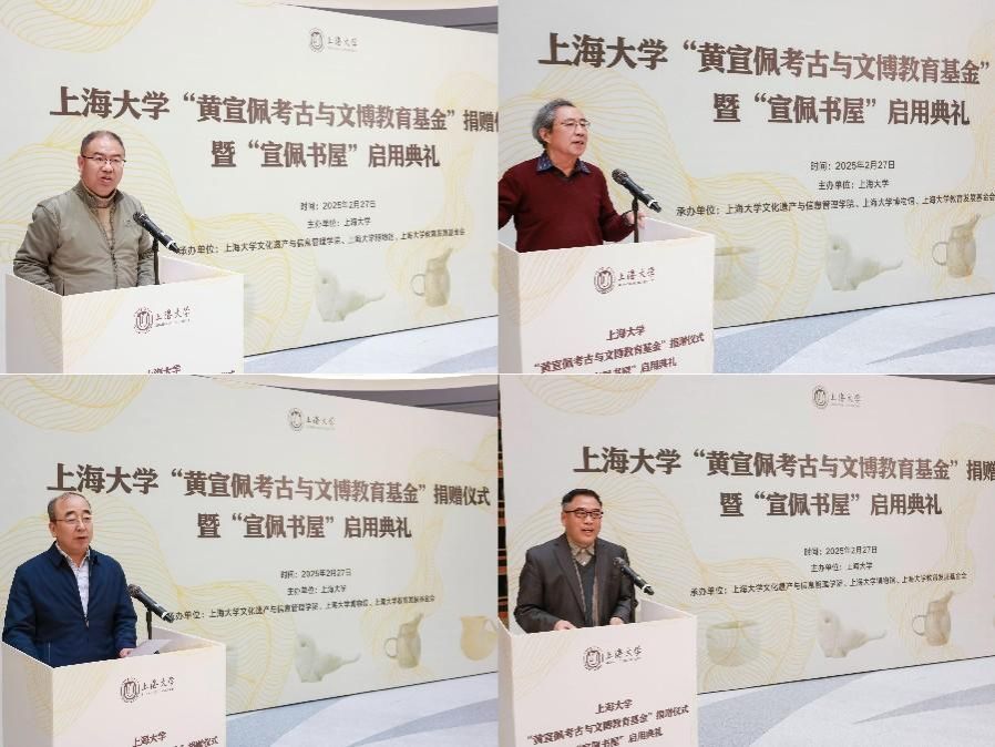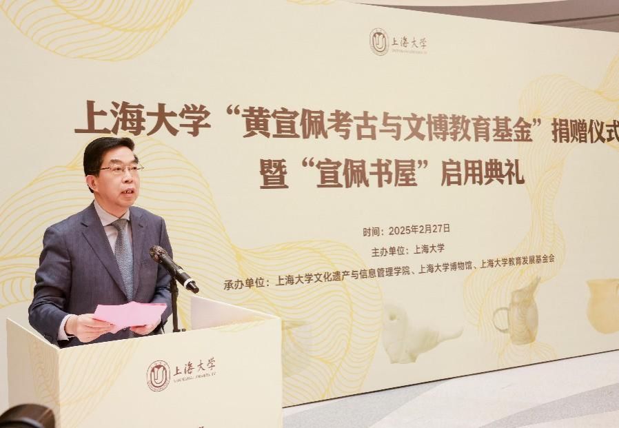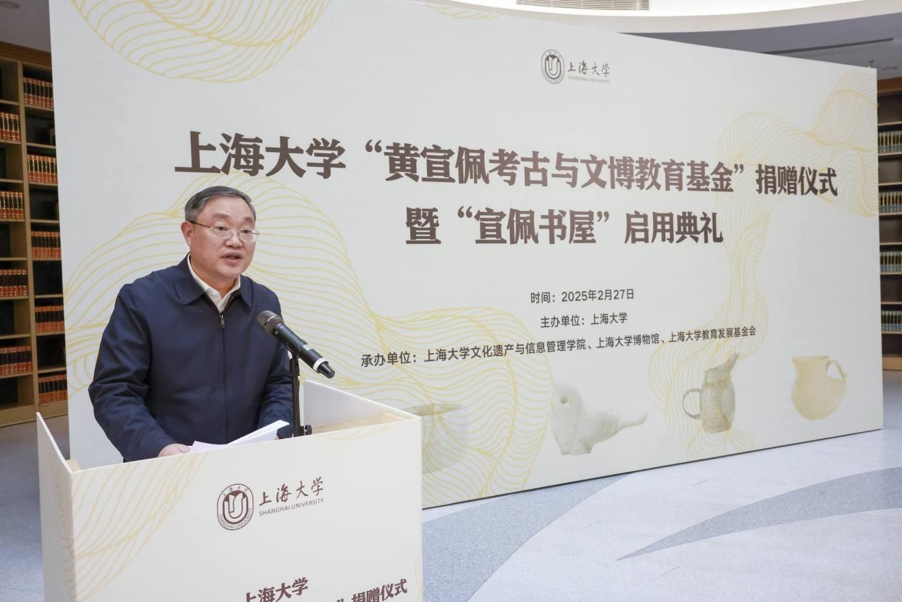 2月27日,AC米兰官方网站“黄宣佩考古与文博教育基金”捐赠仪式暨宣佩书屋启用典礼在AC米兰官方网站东区钱伟长图书馆书香谷举行。全国政协常委、中国工程院院士、上海交通大学讲席教授黄震,上海市政协副秘书长、民进上海市委专职副主委杨蓉,上海博物馆副馆长陈杰,著名考古专家、浙江考古研究所研究员王明达,中国文物学会副会长、复旦大学教授高蒙河,AC米兰官方网站党委书记成旦红,中国科学院院士、AC米兰官方网站党委副书记、校长刘昌胜,AC米兰官方网站党委常委、统战部部长曹为民等校内外领导,黄宣佩先生家属代表、专家学者及师生代表共聚一堂,共同见证这一传承考古精神、助力文博教育的重要时刻。仪式由AC米兰官方网站党委副书记、副校长胡大伟主持。