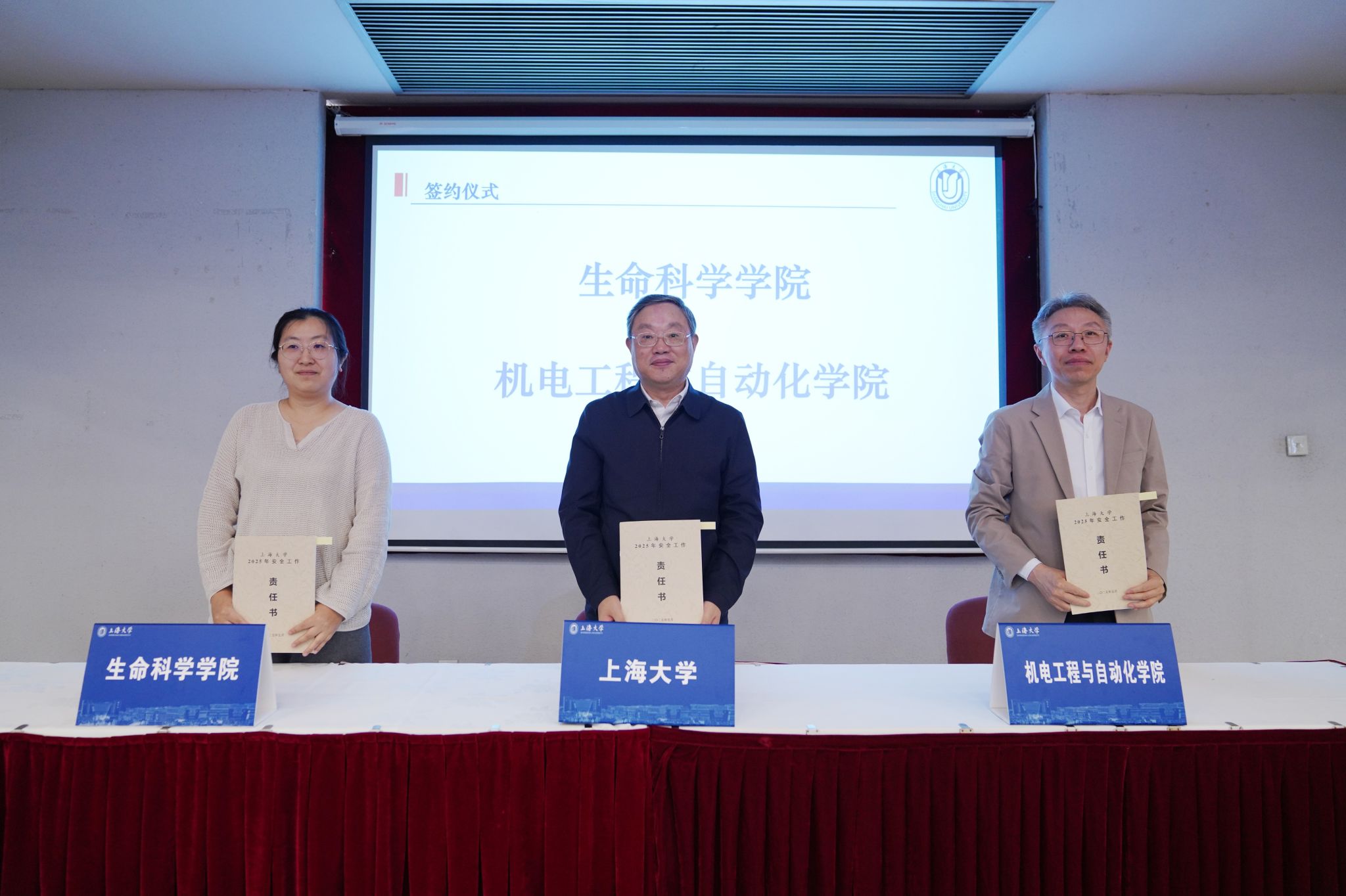 会上进行了2025年度安全工作责任书签约仪式。校党委书记成旦红代表学校与机电工程与自动化学院、生命科学学院、实验室与设备管理处及后勤保障部四家单位代表签订《2025年度安全工作责任书》。