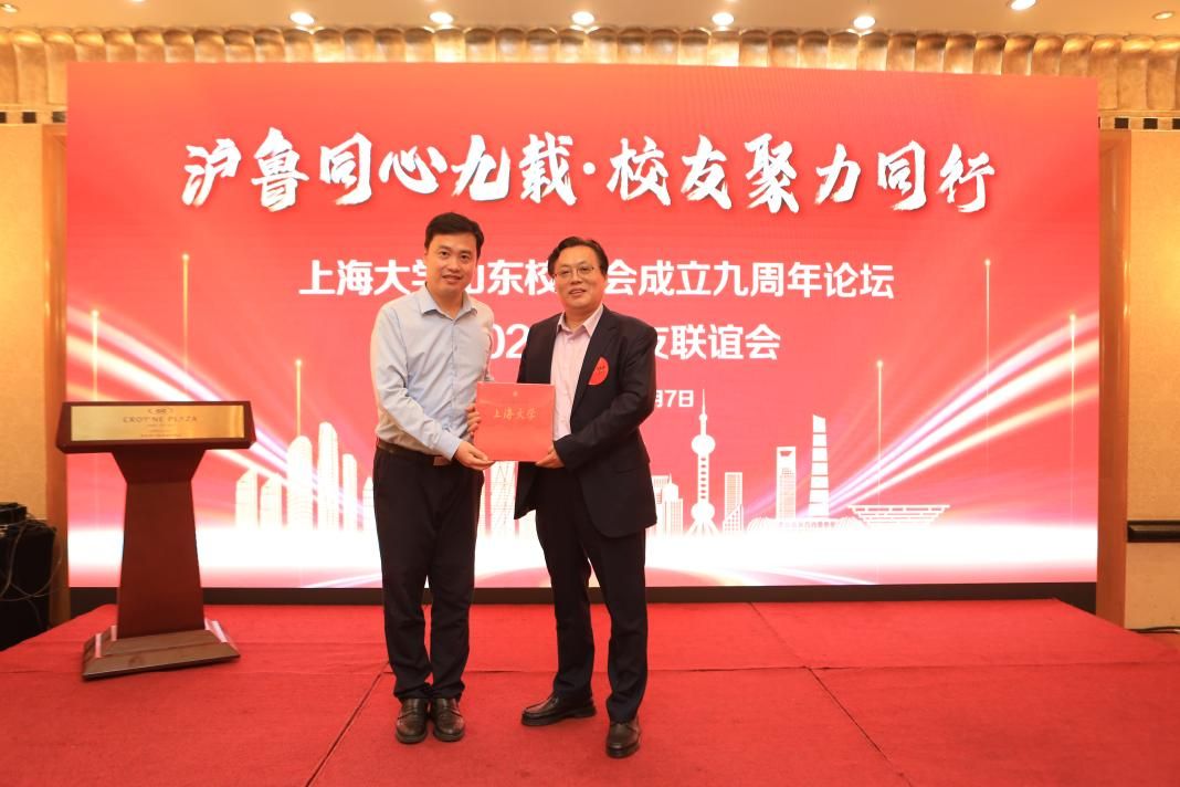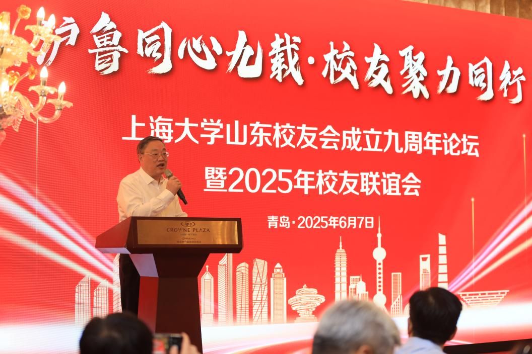 成旦红书记在讲话中向广大山东校友致以亲切问候,他感谢杨克明、杨向栋两任会长及理事会成员的多年付出,并对山东校友会九年来的工作给予了高度评价。他带领校友重温了母校的红色校史,细数了山东校友多年来与母校的深厚情谊。他寄语广大在鲁“上大人”饮水思源、锐意进取、不懈奋斗,在校友会的团结带领下,为母校教育事业、齐鲁地方经济发展与国家现代化强国建设“出力、出智、出彩”。