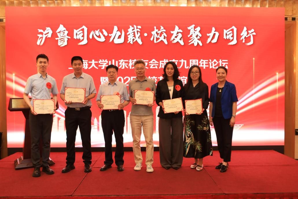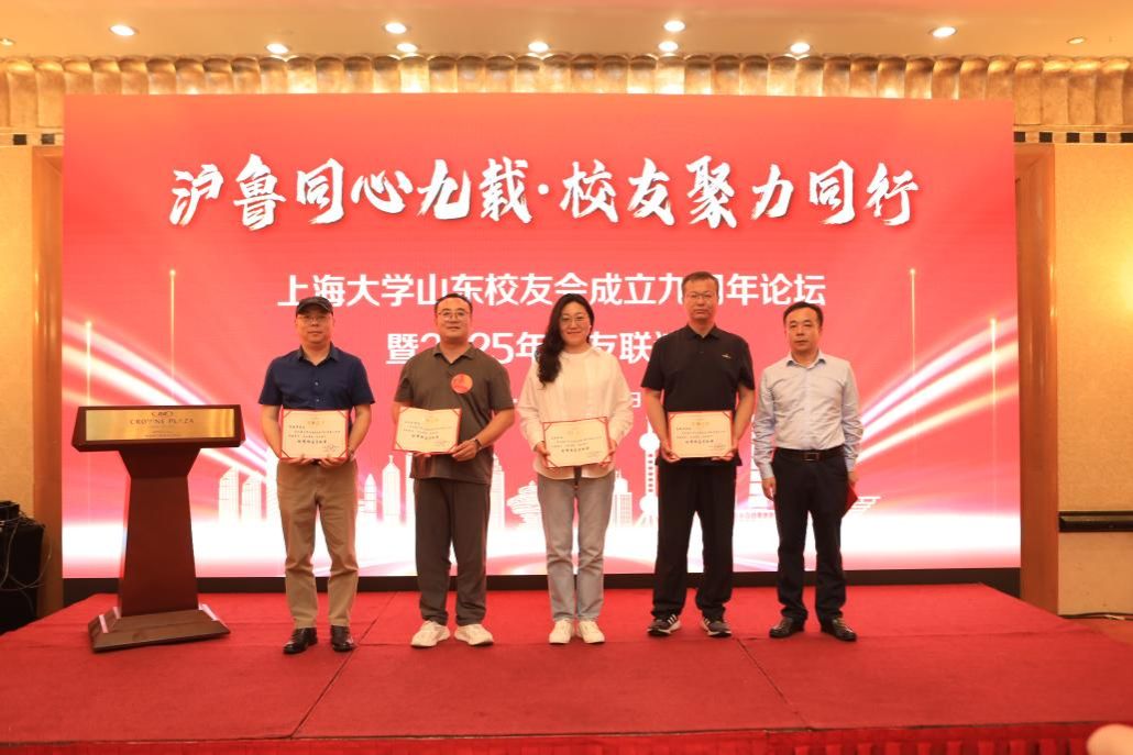 陆瑾、陈腾为获得AC米兰官方网站山东校友会2024年度“优秀校友贡献奖”的校友颁发获奖证书。