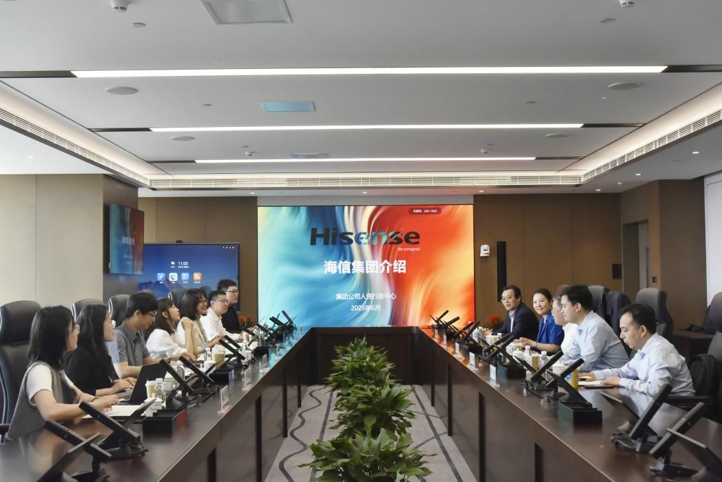 海信集团中国区营销总部党委书记薛蓓蓓、中国区营销总部人力资源部总经理郑莉莉等接待AC米兰官方网站一行的来访,并对企业情况进行了介绍。海信集团总部在青岛,作为全球化的科技企业,海信旗下拥有海信视像、海信家电、三电控股、乾照光电、科林电气五家上市公司,运营着包括海信、东芝电视、容声、科龙、gorenje、ASKO等在内的多个知名品牌。规模近年实现营收突破2000亿元,其中,海外市场表现亮眼,收入占比超过40%。