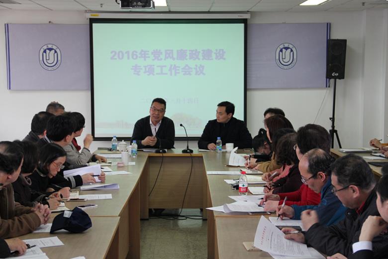 会上,党委办公室副主任、机关党委书记钱峰介绍了近期部分市属高校接受市委巡视的情况,并部署了学校二级单位党风廉政建设责任清单编制工作。国际交流学院党委书记王海燕、基建处副处长宋建交流了本单位推进党风廉政建设工作的主要做法。