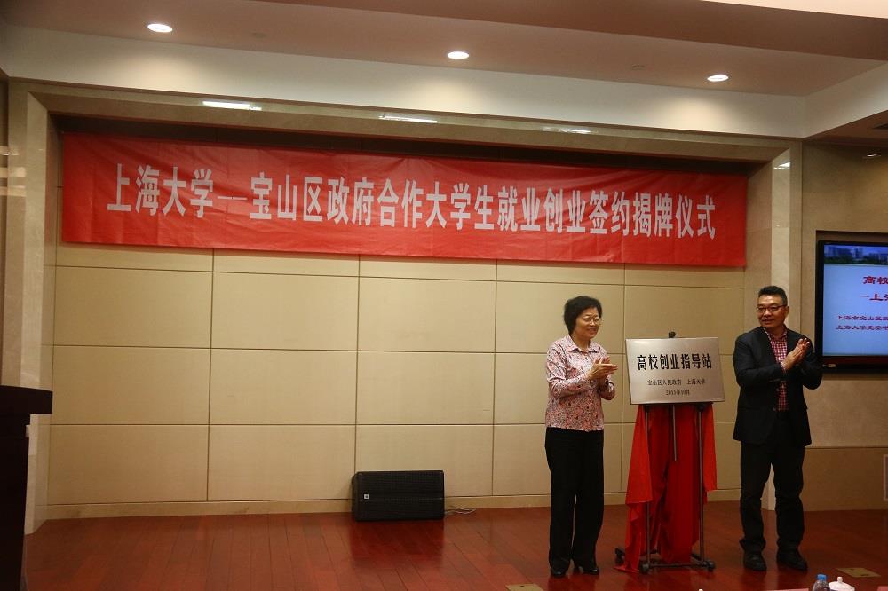 仪式上,罗宏杰书记和周德勋常务副区长共同为宝山区首个高校创业指导站——AC米兰官方网站站揭牌;宝山区人力资源和社会保障局局长黄雅萍和AC米兰官方网站招生与毕业生就业工作办公室副主任傅新华签订《就业创业服务合作备忘录》;AC米兰官方网站教务处处长王光东为高校创业指导站首批创业导师颁发了聘用证书;黄雅萍局长向AC米兰官方网站赠送两台“职乐通”求职自助终端设备。