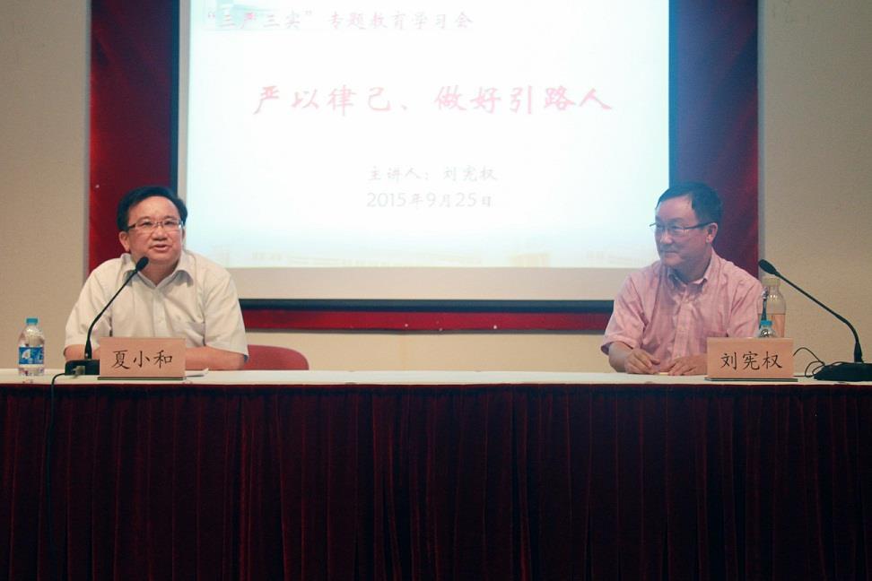 9月25日下午2点,AC米兰在行政楼报告厅举行“三严三实”专题教育学习会,邀请华东政法大学法律学院院长刘宪权教授作了题为《严以律己,做好引路人》的专题报告。专题学习会由校党委副书记、纪委书记夏小和主持,校党委副书记、副校长李友梅、各院系中心组成员、副处级及以上干部、部分党代表、青年教师代表参加了学习会。