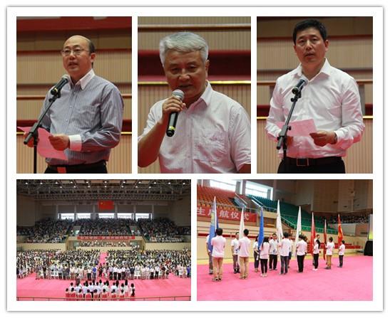 2015年6月27日9:00,社区学院2014级学生启航仪式在校体育馆举办,校党委副书记、副校长徐旭,校党委常委、副校长丛玉豪,校党委宣传部部长李坚,教务处处长王光东、副处长顾晓英,招毕办主任叶红,党办副主任魏宏,校办副主任孟祥栋,学工办主任胡大伟,校团委书记、学工办副主任许烁及社区学院21名导师代表、全体教职工出席了会议,来自18个专业学院的领导、老师和学生会主席们也专程来到会场迎接2014级同学。