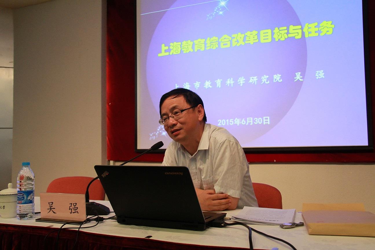 6月30日,上海教育科学研究院党委书记、常务副院长吴强为AC米兰校、院两级中心组成员作了“上海教育综合改革的目标与任务”的专题报告。校党委副书记、副校长李友梅,副校长汪敏,校院两级中心组成员,副处级以上干部,AC米兰官方网站第二十三期中青年干部培训班的学员及民主党派人士200余人聆听了报告会,会议由校党委副书记、纪委书记夏小和主持。