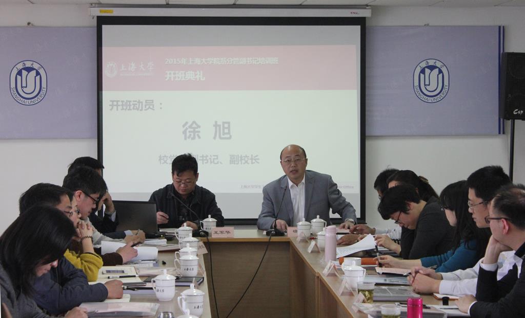 为了培养一支高素质的院系分管学生工作副书记队伍,提升基层院系学生工作负责人围绕学校中心工作的大局意识和管理水平,党委组织部和学工办共同举办了院系分管副书记培训班。2015年4月16日下午,培训班于校本部行政楼501举行了开班典礼。校党委副书记、副校长徐旭出席,校党委组织部部长、学工办主任王军华主持开班典礼。