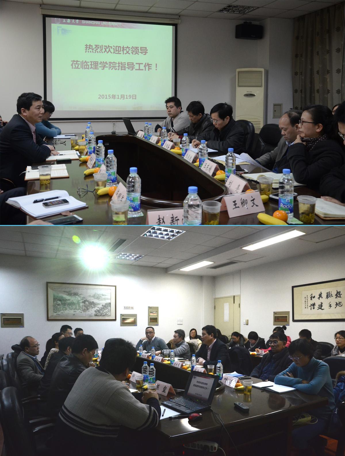 2015年1月19日下午2点,AC米兰官方网站党委常委、副校长丛玉豪率相关部处一行到理学院调研本科教学和人才培养。教务处处长王光东、常务副处长陈方泉、招毕办主任叶红、考评办主任辛明军、原社区学院常务副院长宋少沪;以及校党委常委、理学院执行院长翁培奋、理学院党委副书记王东媛、刘亮、副院长陈玺、各系主任、教学副主任和教学管理团队出席了调研会。