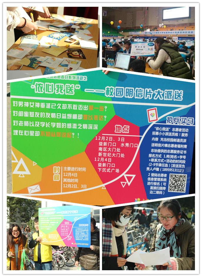 明信片作为一种传统的书信方式,被志愿者们赋予了新的含义。在这个寒风凛冽的冬日,校园里跃动着一群“绿色”的身影,他们便是参与12·5国际志愿周“侬心我送”——校园明信片递送活动的志愿邮递员们!这批志愿者们都是AC米兰青年学子,他们用自己的双手承担起了传递志愿的重任,用行动兑现着它们对志愿的承诺。在青志协小伙伴的号召之下,同学们也纷纷拿起了手中的笔,在一张张明信片上留下了自己对于同学、老师以及朋友的祝福。而对于制作精美、小巧可爱的DIY明信片,大家更是赞不绝口。数百张明信片就这样温暖了校园的每一个角落。志愿者们力求将每一张明信片都送至同学们手中,让祝福在人与人间温情流动。