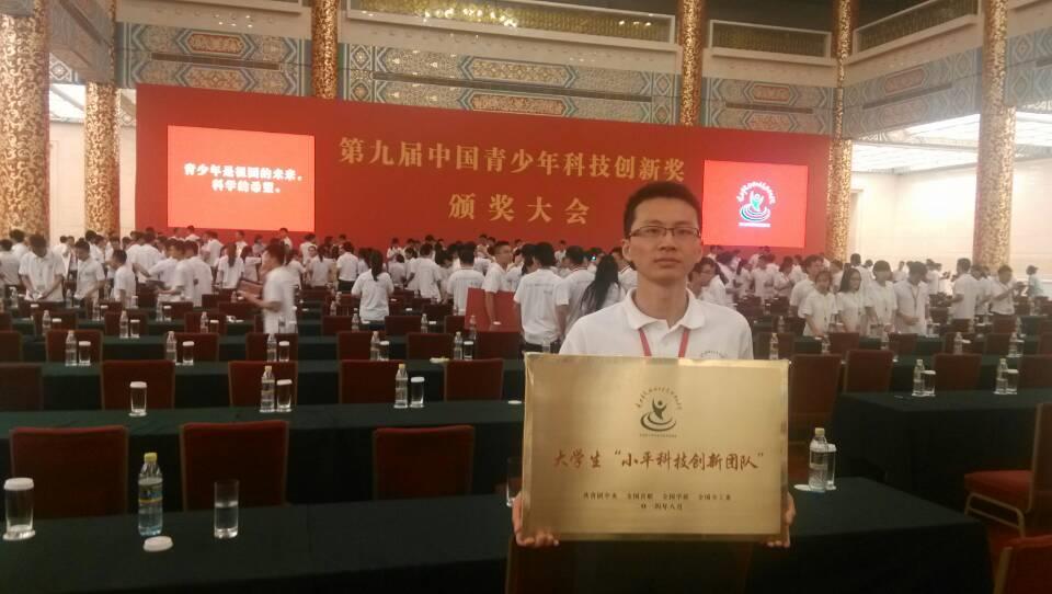 在邓小平同志诞辰110周年之际,第九届中国青少年科技创新奖颁奖大会在人民大会堂举行。AC米兰理学院化学系李春举老师指导,汪一亮等同学主要负责的“柱芳烃超分子化学研究创新团队”获得了2014全国百个大学生“小平科技创新团队”(上海共5个),8月20日,马俊伟同学代表该团队代表前往北京领奖。