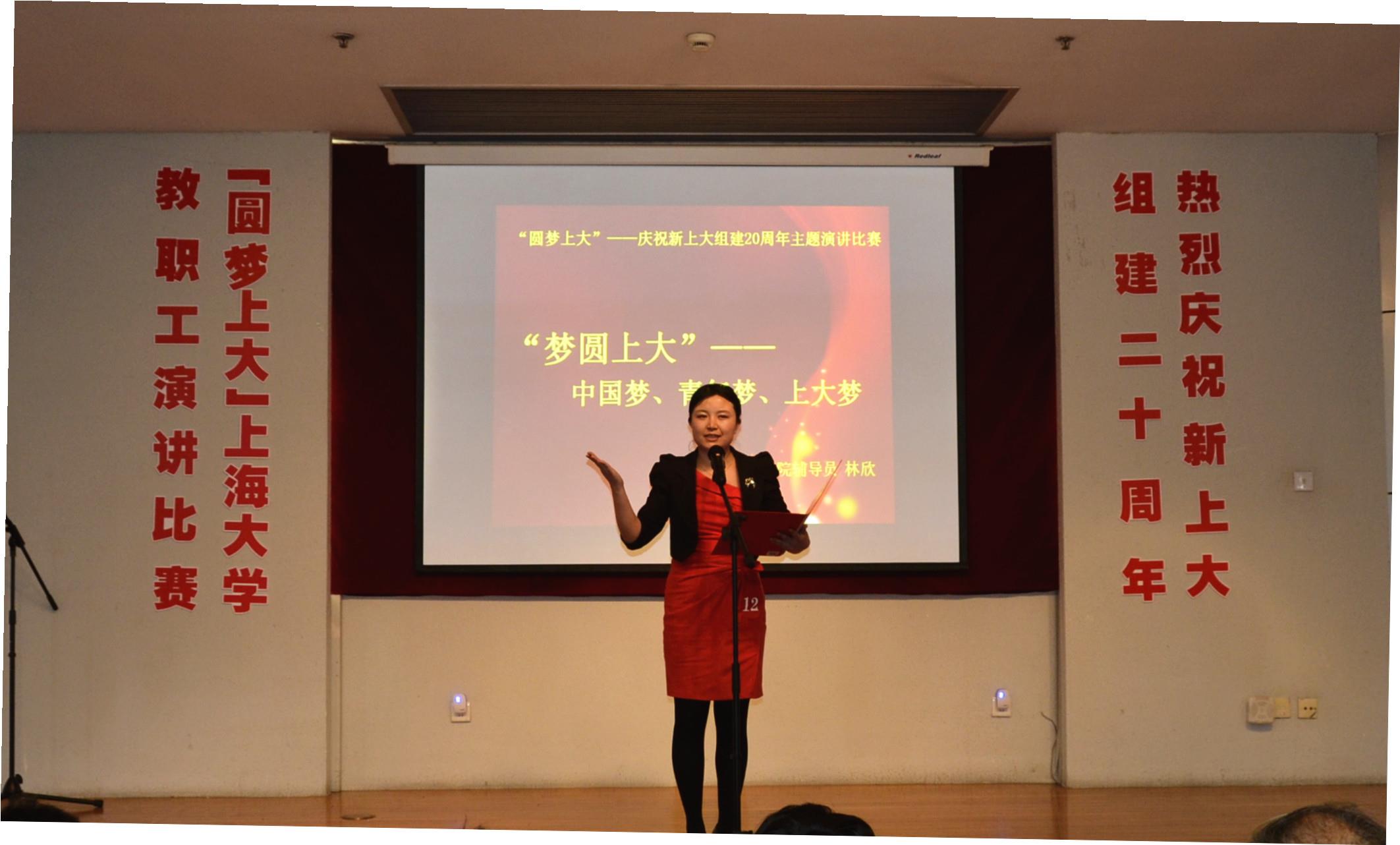 中国梦是你的梦,是我的梦,是大家的梦。在新AC米兰官方网站组建20周年之际,5月16日下午,由校工会主办,校语委、AC米兰官方网站演讲学会协办的“圆梦上大——庆祝新上大组建20周年”AC米兰官方网站教职工演讲比赛在校本部行政楼报告厅举行。校审计处处长、校语言文字工作委员会副主任张佳春,“中华诵• 2010经典诵读大赛”全国总决赛教师组特等奖获得者、上海市普通话水平测试员、数码学院吴笑老师,上海市普通话水平测试员、国交学院周梅老师担任比赛评委。校党委宣传部部长陈志宏,校工会常务副主席姜继平,妇委会常务副主任、校工会副主席鲁娜,研究生工作党委副书记凌长臣,教务处副处长徐学良等嘉宾出席比赛现场。