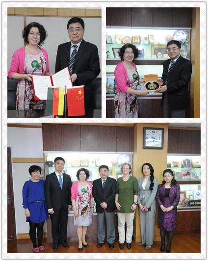 随后双方谈到了学校的具体合作内容。叶校长说,德国的工业,尤其是汽车业一直以来是世界上首屈一指的,我们非常愿意也很希望能够在工科方面与不来梅大学进行交流,可以从部分专业开始项目的合作。Yesemin副校长说现在德国的学生对中国感兴趣的非常多,不仅仅是语言和文化,也包括了经济贸易等领域,两校即将开展学生交换项目。