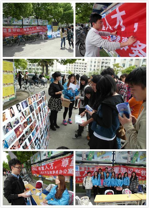 “世界知识产权日”旨在全世界范围内树立尊重知识、崇尚科学和保护知识产权的意识,营造鼓励知识创新和保护知识产权的法律环境。为普及知识产权法律知识,传播知识产权文化理念以及增强在校师生的法制观念,本次活动由学校法律事务办公室工作人员与AC米兰知识产权学院研究生共12人组成专门的志愿者宣传团队。今年,世界知识产权日的主题是“电影——全球挚爱”,活动现场通过发放宣传册、法律咨询、展板宣传、横幅签名以及商标有奖竞猜等多种形式,使参与者了解什么是知识产权以及知识产权与电影的关系。在法律咨询的环节中,志愿者们不仅介绍了知识产权的重大典型案例,还针对上海自贸区建设可能涉及的知识产权保护、建立知识产权法院等热点问题向师生做了耐心详细的解答。