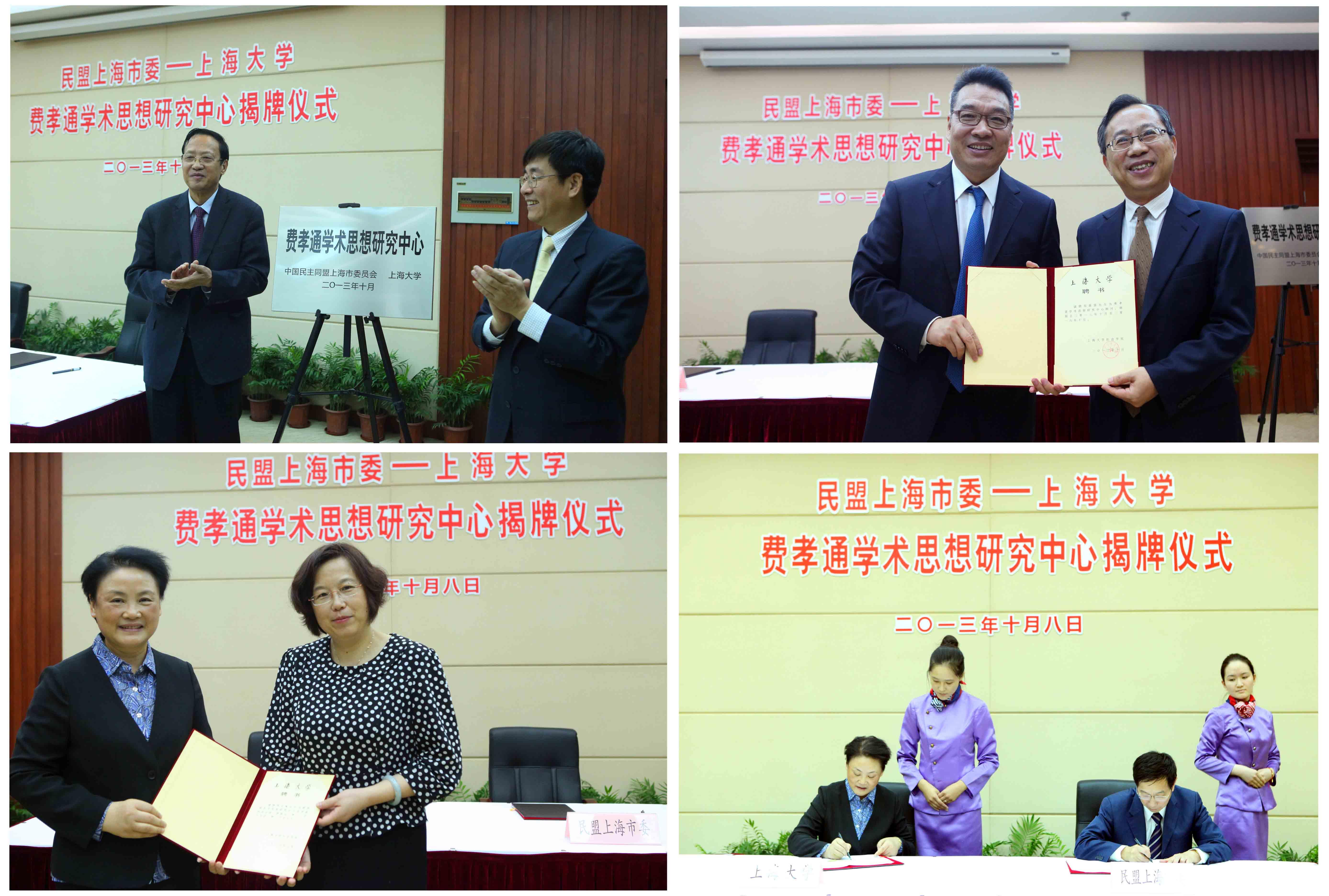 民盟上海市委方荣副主委与李友梅副校长分别代表民盟市委和AC米兰官方网站签订双方合作框架协议。张宝文主席和于信汇书记为研究中心揭牌。费孝通学术思想研究中心正式宣告成立。张宝文及郑惠强被聘为费孝通学术思想研究中心顾问,沈志刚和李友梅任研究中心主任,AC米兰官方网站社会学院院长张文红任研究中心副主任,李友梅任研究中心学术委员会主席(兼)。