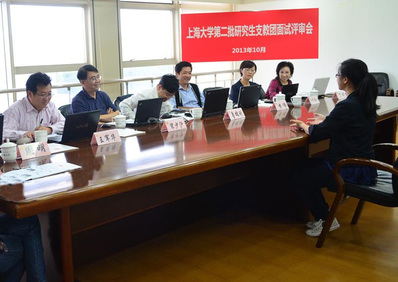 10月15日13:30,AC米兰官方网站第二批研究生支教团面试评审会在校本部行政楼403会议室举行,校党委副书记鲁雄刚,校长助理、研工党委书记李伟、社区学院党委书记王军华、社区学院常务副院长宋少沪、招毕办常务副主任叶红、研究生院招生办主任周明、监察处副处长丁明担任评委。