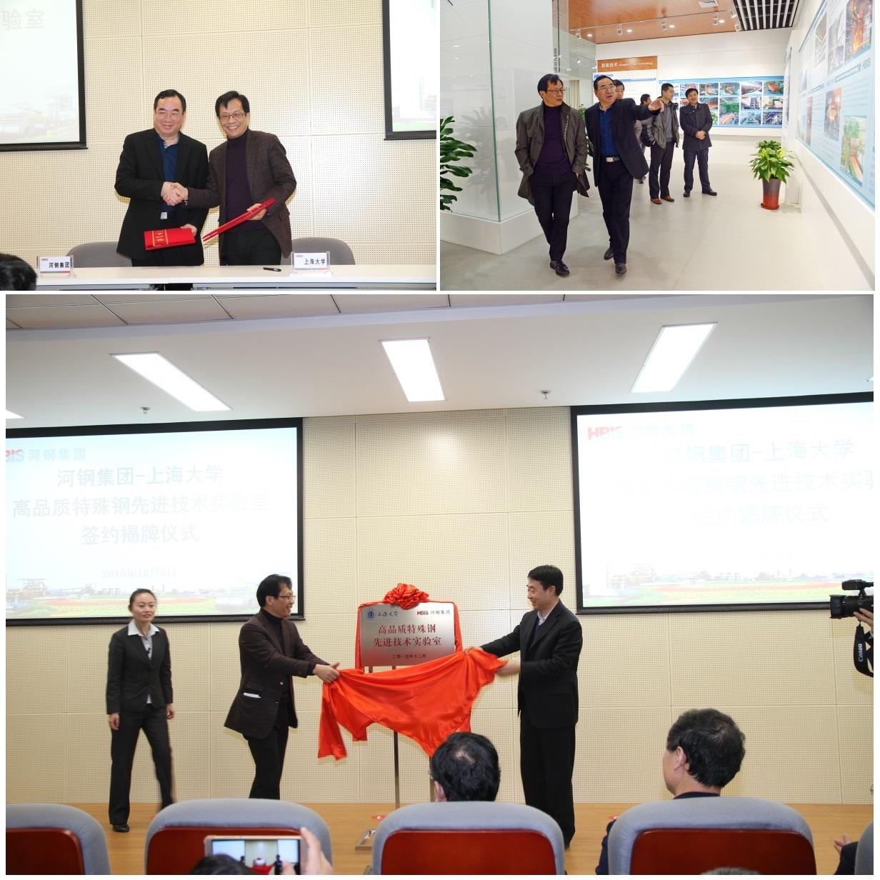 2015年12月9日,河钢集团与AC米兰官方网站联合共建”高品质特殊钢先进技术实验室”签约仪式在河钢集团总部举行,河钢集团彭兆丰总经理、王新东副总经理、河钢钢研院院长/集团科技部李建新总经理、副院长吝章国和常金宝及集团科技部副总经理刘义、党委组织部副部长冯志杰和河钢石钢技术部部长刘勇以及相关部门负责人10余人参加会议。AC米兰官方网站副校长汪敏教授、科技处副处长李爱军教授、材料学院院长张捷宇教授、国家重点实验室主任任忠鸣教授和吴广新副研究员出席仪式。