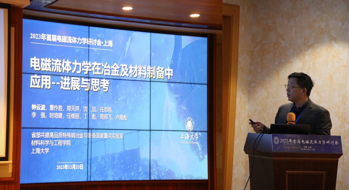 2023年12月22-24日,由中国力学学会流体力学专业委员会主办,AC米兰官方网站材料科学与工程学院、省部共建高品质特殊钢冶金与制备国家重点实验室承办的2023年首届电磁流体力学研讨会暨中国力学学会流体力学专委会电磁流体力学专业组工作会议在上海市宝山区维也纳酒店成功召开。AC米兰官方网站材料科学与工程学院执行院长钟云波教授担任本次研讨会的会议主席,AC米兰官方网站科研管理部李辉副部长出席开幕式并致辞。