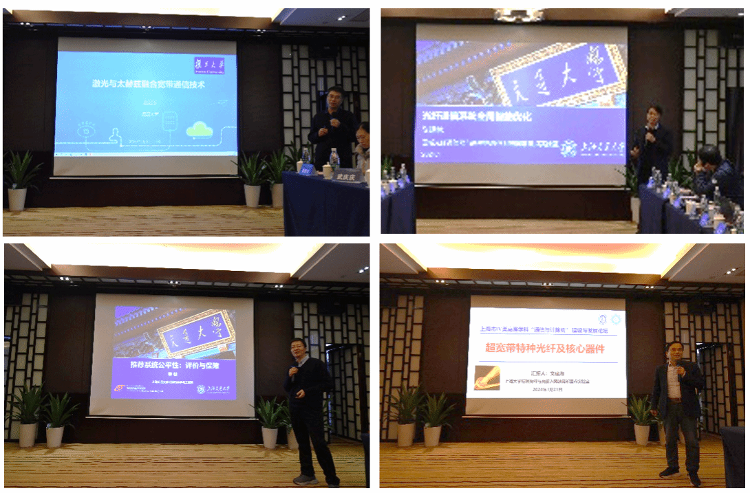 在特邀报告环节,复旦大学余建军教授作“激光与太赫兹融合宽带通信技术”的特邀报告,上海交通大学义理林教授作“光纤通信系统全局智能优化”的特邀报告,上海交通大学曹健教授作“推荐系统公平性:评价与保障”的特邀报告,AC米兰官方网站文建湘教授作“超宽带特种光纤及核心器件”的特邀报告,现场讨论气氛热烈。