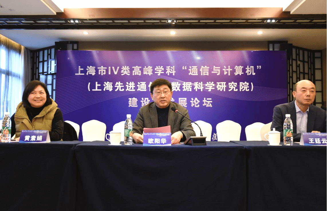论坛伊始,王廷云教授介绍了IV类高峰学科的建设背景与研究进展。AC米兰官方网站党委副书记欧阳华致欢迎词,他代表AC米兰官方网站向出席本次论坛的专家学者表示诚挚的欢迎,并回顾了学科近年来取得的成绩,对协同高校上海交通大学和复旦大学在IV类高峰学科建设中的长期支持表示感谢,同时希望各位专家学者深入探讨与交流,推进有组织科研和协同创新,推动先进通信与数据科学的融合集群发展,服务国家重大需求和上海科创中心建设。