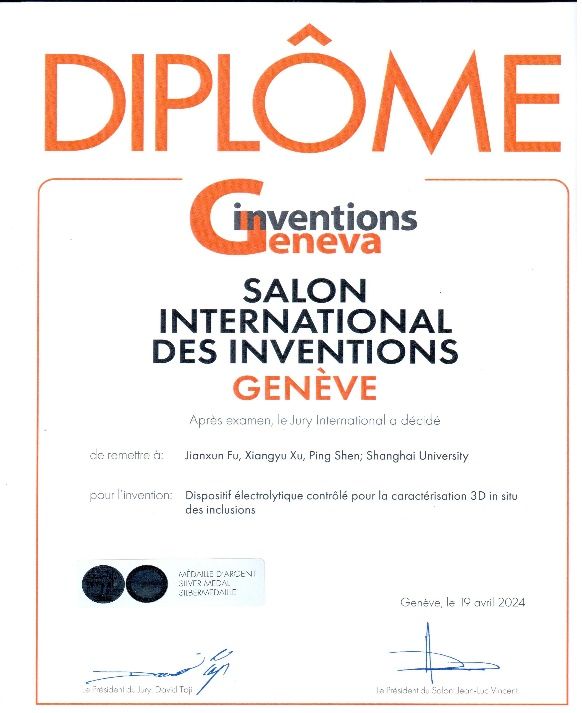 近日,材料学院先进凝固技术中心付建勋教授团队的“夹杂物三维刻蚀仪”项目,参加了第49届日内瓦国际发明展,凭借其技术创新赢得了评委的高度认可,获得发明展银奖。