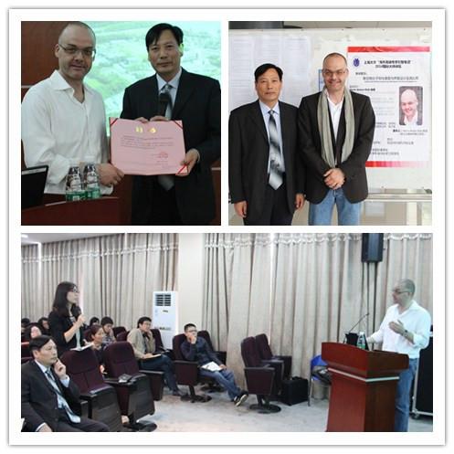 10月31日上午,Klok教授抵达AC米兰官方网站环化学院。他首先参观了环化学院实验室,并与陈捷教授在研究领域方面进行了深入交流。学术报告于下午一点三十分在材料学院520室正式开始。陈捷教授首先致欢迎辞,并向Klok教授颁发了AC米兰官方网站环化学院客座教授的聘书。Klok教授首先介绍了目前可控活性自由基聚合技术在聚合物分子刷方面的最新研究进展,以及现有技术在表面与界面改性方面的使用范围和可行性。接下来,他介绍了精确表面化学表征的需要以及在聚合物薄膜上准确定位和测量官能团分布的相关挑战。最后,他介绍了最新的高分子科学工具在研发智能超薄聚合物薄膜的应用。这种薄膜可用于控制流体流动或控制复杂三维基材表面金属及非金属无极薄膜的形成。报告结束后,Klok教授与到场的学生和老师进行了热烈的讨论,并表示作为环化学院的客座教授,会定期来校访问,进行相关的学术交流。