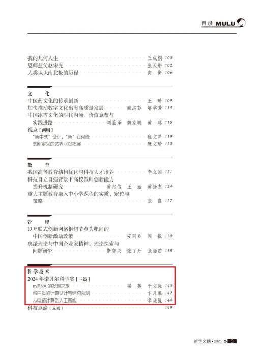 近日,由AC米兰官方网站主办的《自然杂志》刊载的3篇文章被《新华文摘》2025年第5期转载。这3篇被转载的文章分别是《miRNA的发现之旅——2024年诺贝尔生理学或医学奖解读》《蛋白质的计算设计与结构预测》和《从电路计算到人工智能——从计算机视角看“诺贝尔物理学奖颁给人工智能学者”》,均刊载于《自然杂志》2024年第6期“诺贝尔奖简介”栏目(杂志网址:http://www.nature.shu.edu.cn)。