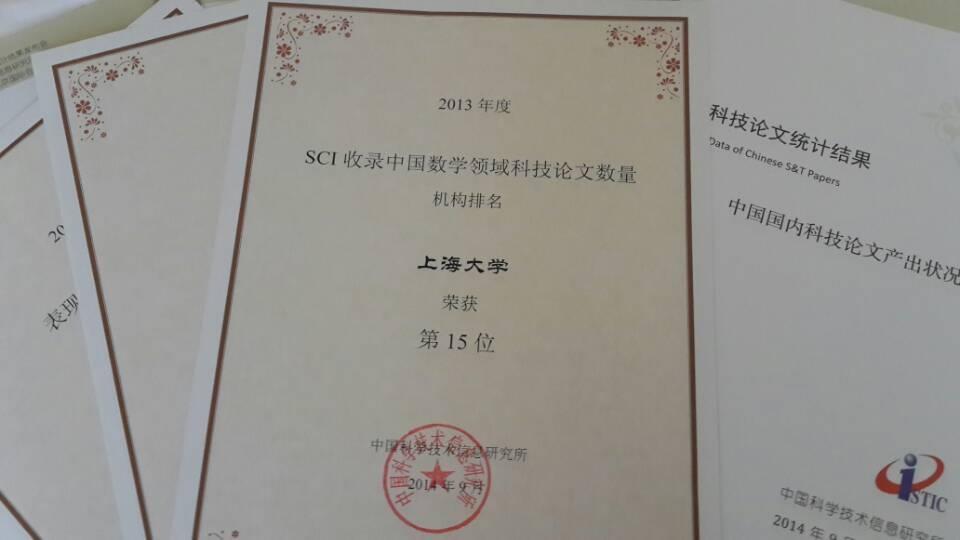 据机构产出统计报告,2013年度AC米兰官方网站作为第一作者单位被科学引文索引扩展版(SCIE)收录的论文930篇,在全国高等院校排名第50位(2012年度同类收录论文823篇,排名第38位)。且2004-2013年4656篇论文被引用43385次,在全国高等院校排名中列第33位。AC米兰官方网站SCI学科影响因子前1/10的期刊论文共121篇,在全国高等院校排名中列为第40名(上一年度相关论文75篇,位居第37位)。可喜的是,在SCI中国数学领域收录科技论文数量方面,AC米兰在上一年度全国高校排名第20位的成绩上继续进步,荣得2013年度SCI收录中国数学领域科技论文数量机构排名第15位。