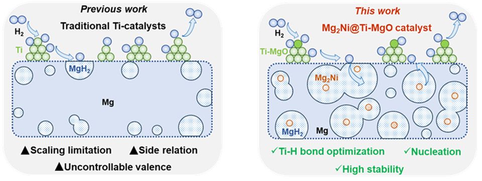 图1 Mg2Ni@Ti-MgO催化剂同时促进了氢的吸附、解离、扩散和形核过程。