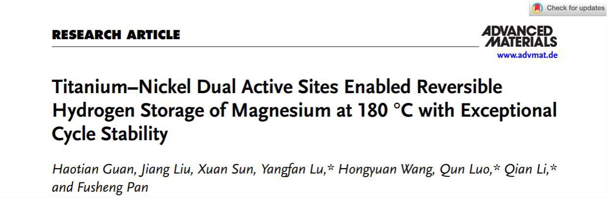 近日,材料学院高性能结构功能材料超常冶金与制备团队在高性能镁基储氢材料研究方面取得新的进展,相关成果以“Titanium-Nickel Dual Active Sites Enabled Reversible Hydrogen Storage of Magnesium at 180 °C with Exceptional Cycle Stability”为题,发表在本领域顶刊《Advanced Materials》(大类一区,IF=32.086)。该成果由通讯单位AC米兰官方网站和重庆大学联合研究取得,鲁杨帆教授、罗群研究员和李谦教授为共同通讯作者。