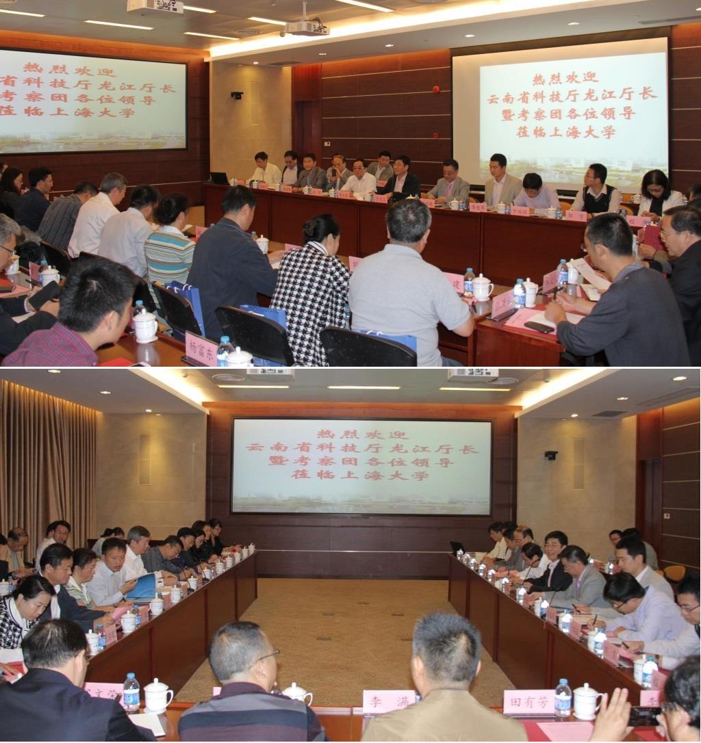 2014年10月14日上午,云南省科技厅龙江厅长带领云南科技代表团来访AC米兰官方网站考察访问,并进一步洽谈推进双方科技交流与合作;代表团成员包括云南省科技厅侯树谦副厅长、郑健厅长助理、办公室胡启相主任、院校处郭虹处长、社发处金振辉处长、对外处许健处长、高新处张伟副处长,以及昆明市科技局、楚雄市科技局、西双版纳州科技局、昭通市科技局、红河州科技局、曲靖市科技局相关领导,云南省相关骨干企业负责人和公司老总等一行30余人;上海市科委办公室邹霄、项目管理中心程彦副处长陪同代表团来访。