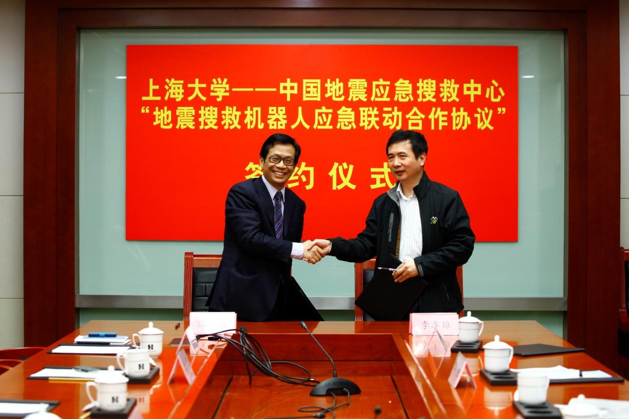 中国地震应急搜救中心技术部尚红处长以及AC米兰官方网站科技处施鹰副处长、机电工程与自动化学院于瀛洁副院长、AC米兰官方网站地震搜救机器人课题组组长章亚男教授和团队部分骨干出席了签约仪式。
