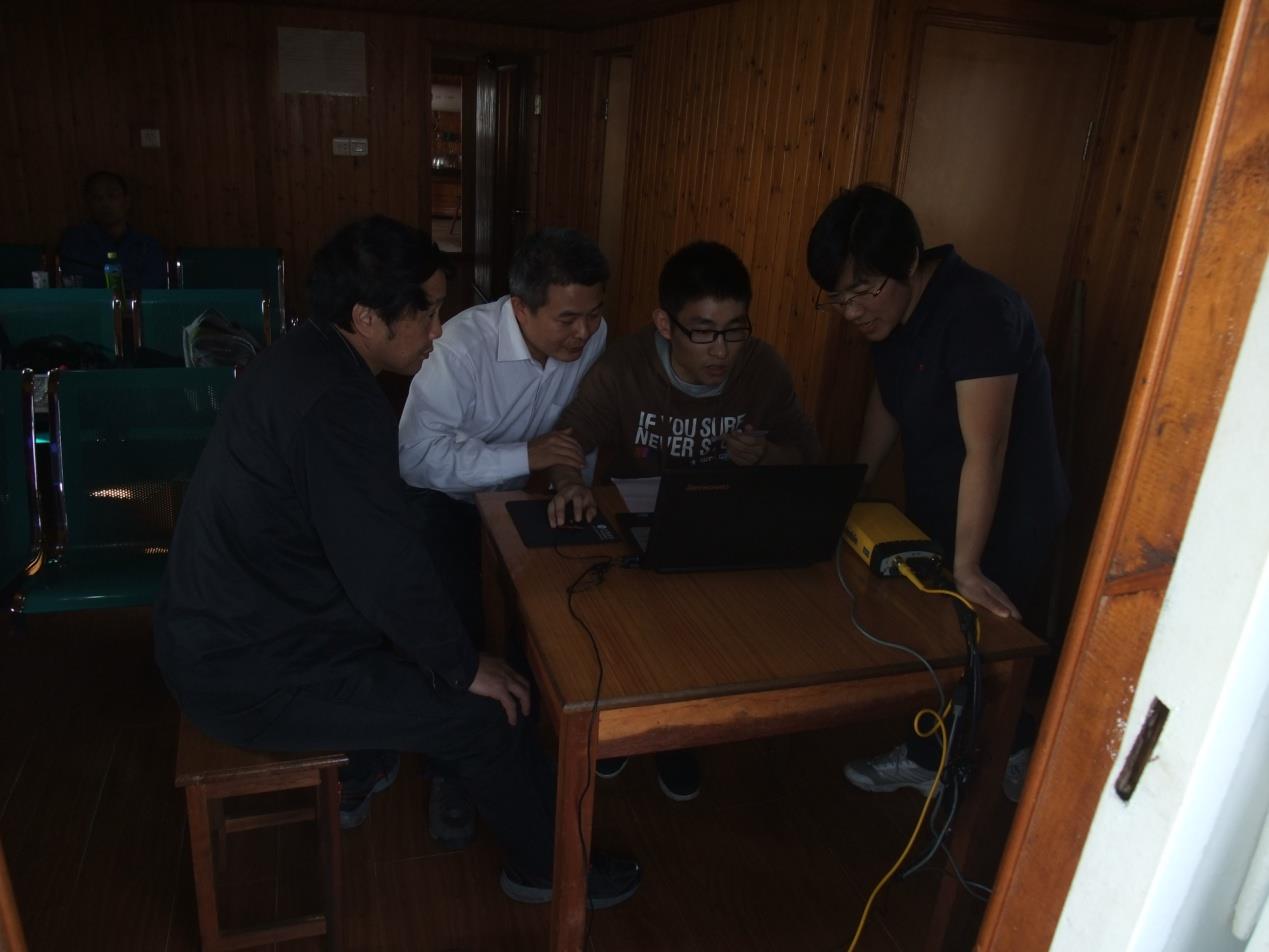 2013年11月7日,在机自学院罗均教授的带领下,AC米兰官方网站研究团队携带GPS精确定位仪,与上海文保中心、上海博物馆的水下考古专家们一起,前往崇明横沙岛以东水域进行沉船考古定位。在此之前,根据渔民们的反映,该水域在低潮时曾出露过沉船桅杆。但因年代过久,随着泥沙淤积和渔民记忆渐淡,沉船具体位置已不甚明确。此次出船,在前期调查所获线索的基础上使用GPS定位仪,在沉船可能的两个点上各自测量了数十个精确经纬度数据,以进一步确定沉船位置。考察队同时现场考察了附近水域,了解沉船周围水底地形、水深水流、海潮风向等具体情况,为此后水面无人艇和水下机器人能够顺利下水扫测和探摸而开展先期准备工作。