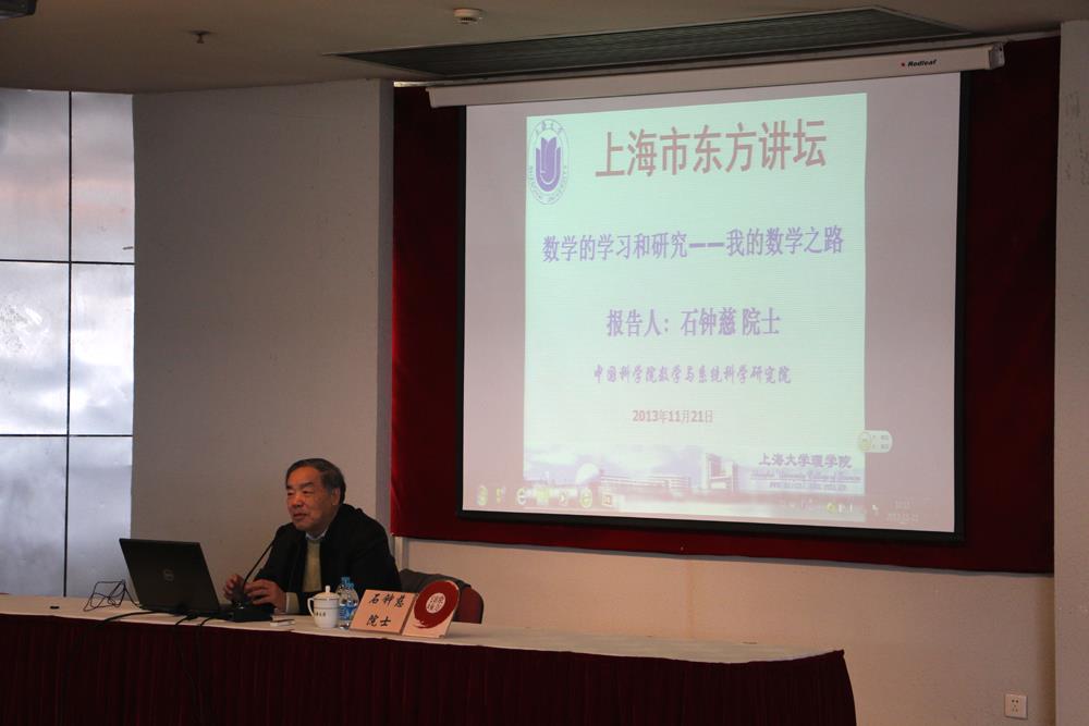 上海市东方讲坛: “数学的学习和研究—我的数学之路”于2013年11月21日上午在AC米兰官方网站校本部行政楼报告厅隆重举行。AC米兰官方网站迎来了中国科学院院士石钟慈先生,师生们济济一堂,还有校外的许多听众慕名前来,一起参加了这次“上海市东方讲坛”报告会。