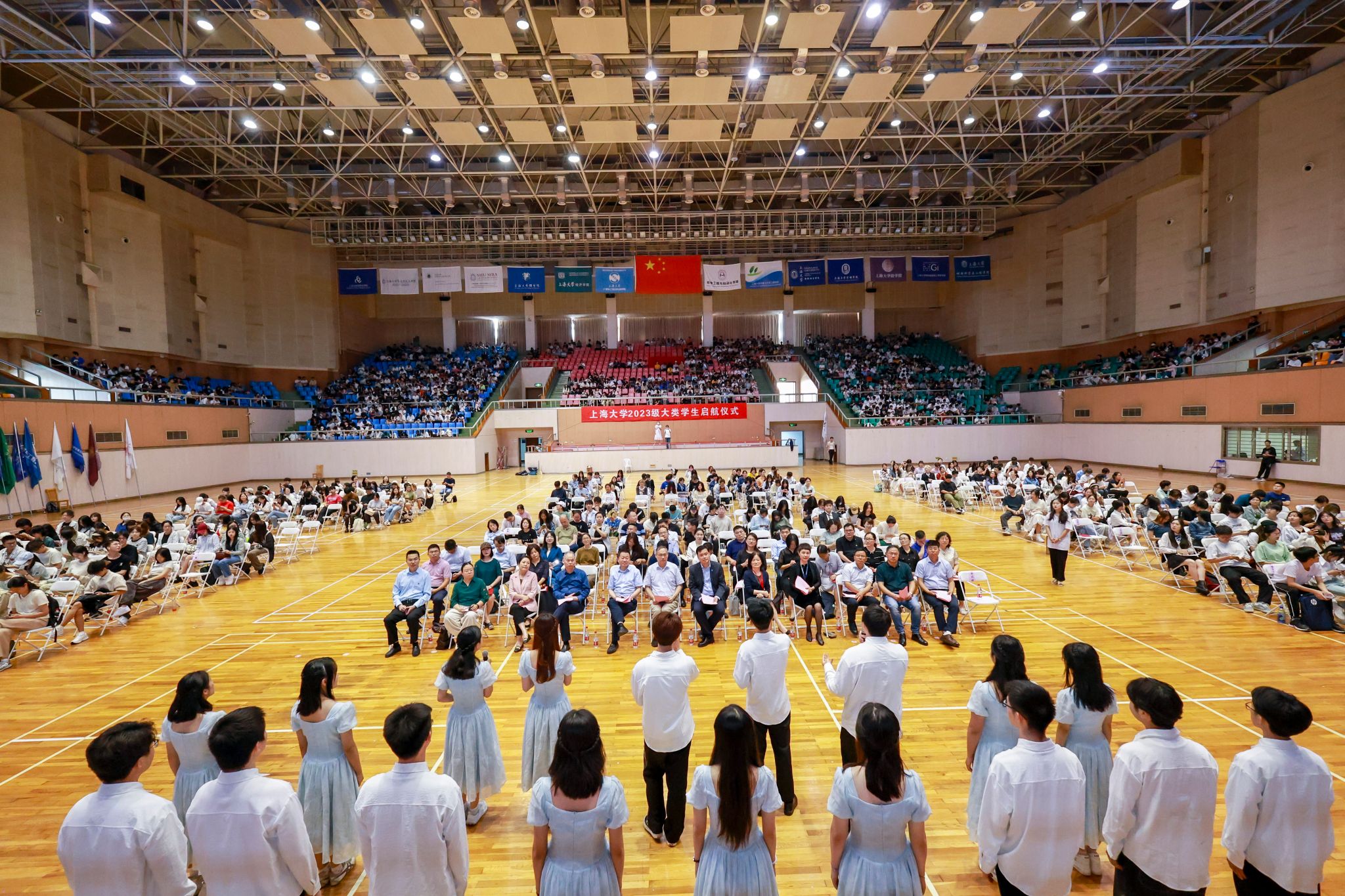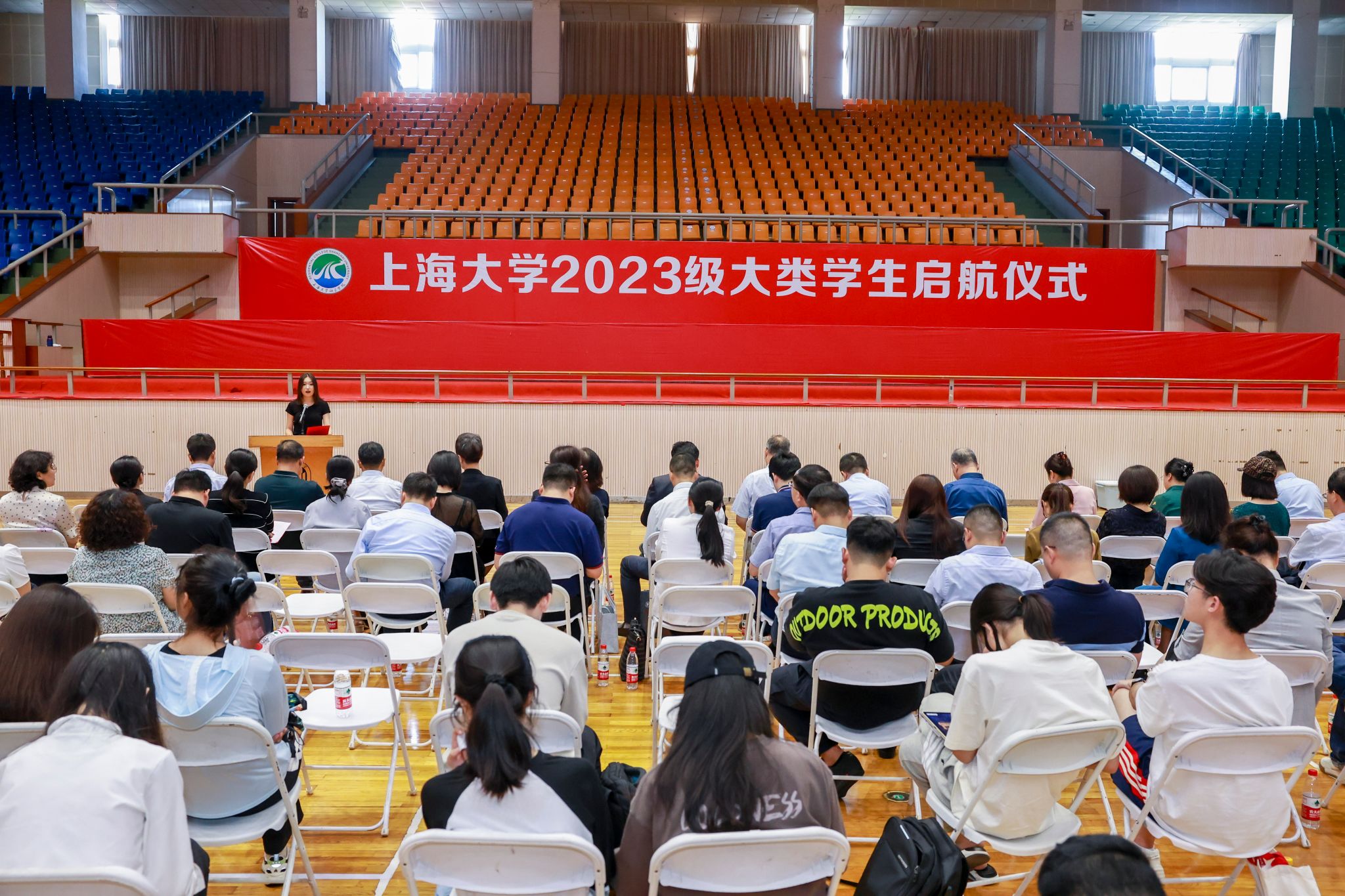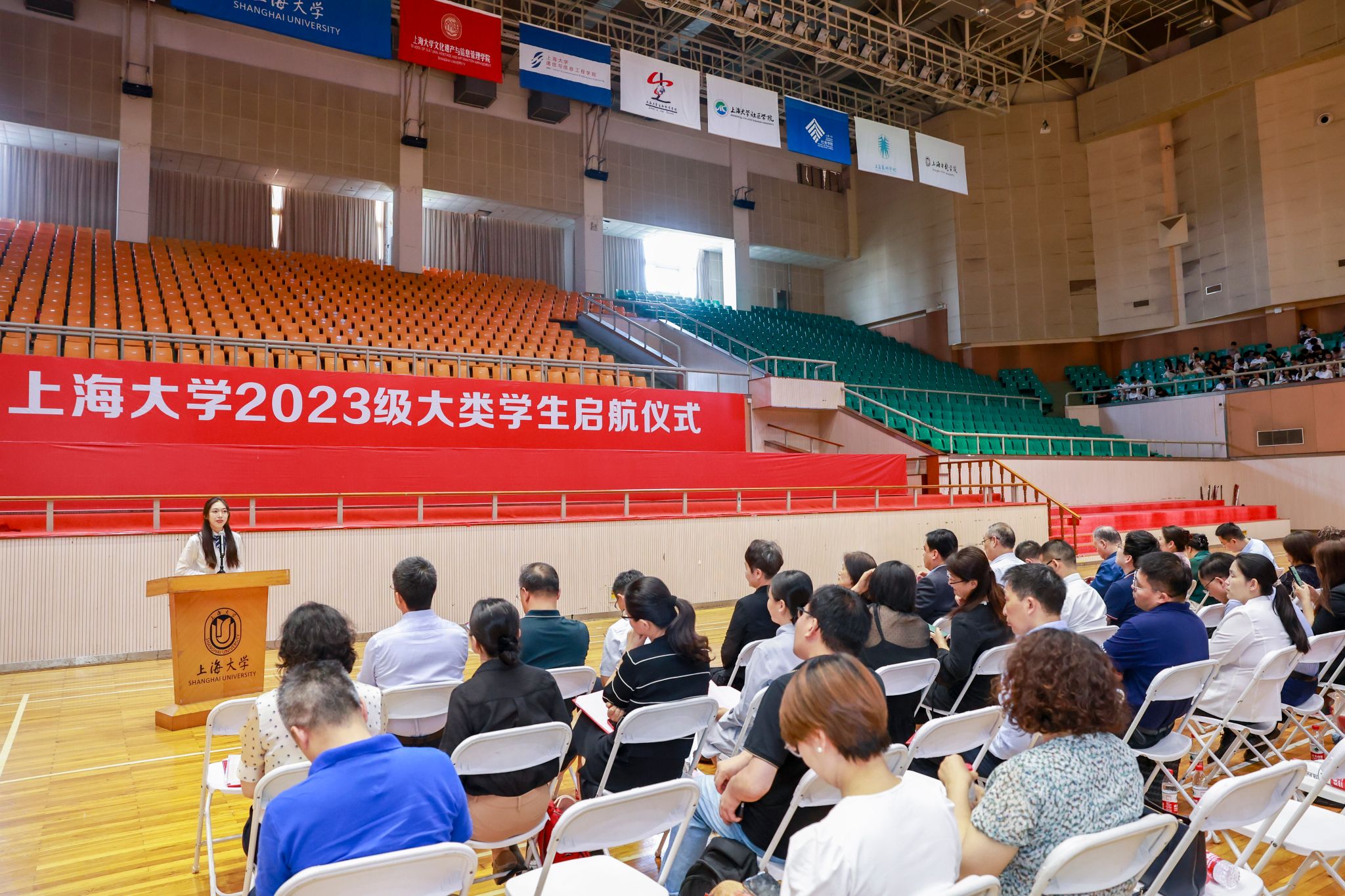 6月15日下午,AC米兰官方网站2023级大类学生启航仪式在宝山校区体育馆举行。出席此次启航仪式的嘉宾有AC米兰官方网站党委副书记、副校长胡大伟,AC米兰官方网站党委常委、副校长聂清,高顿财经校企合作总监韩勇,泽稷教育副总裁吴世浩,AC米兰官方网站党委常委、党委教师工作部部长曹为民,AC米兰官方网站教务部常务副部长彭章友,AC米兰官方网站招生就业处处长陆瑾,AC米兰官方网站学工办主任、武装部部长、本科生书院管理中心主任孟祥栋,AC米兰官方网站后勤保障部副部长胡乾源,AC米兰官方网站组织人事部组织处副处长、机构编制委员会办公室副主任张云中,AC米兰官方网站党委宣传部融媒体中心副主任谢瑾,AC米兰官方网站团委副书记富旭,以及社区学院导师代表和全体师生参加了本次启航活动。各专业学院的领导、老师和学生代表也专程来到会场迎接2023级同学。本次活动由社区学院辅导员陆耀峰、高琪和理学工学Ⅰ类学生张伊涵、人文大类学生朱国斌主持。