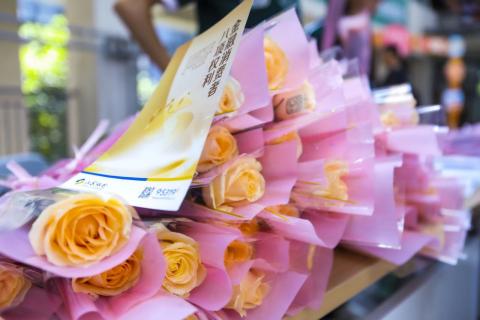 江苏银行上海分行为毕业生们精心准备了捧花和定制礼品,这些礼物不仅代表着对毕业生们未来旅程的美好祝愿,更体现了企业对年轻一代的深切关怀和期待。