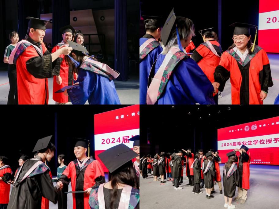 最后,在学位授予环节,毕业生们分别走上舞台中央,学院领导依次为他们拨穗,并将学位证书一一送到学子们的手中。这一刻,标志着他们从学生身份转变为校友,所有的辛勤努力和付出都化作了脸上灿烂的笑容。毕业生们用坚定的步伐,迈向新的征程,展现了对未来的无限憧憬。